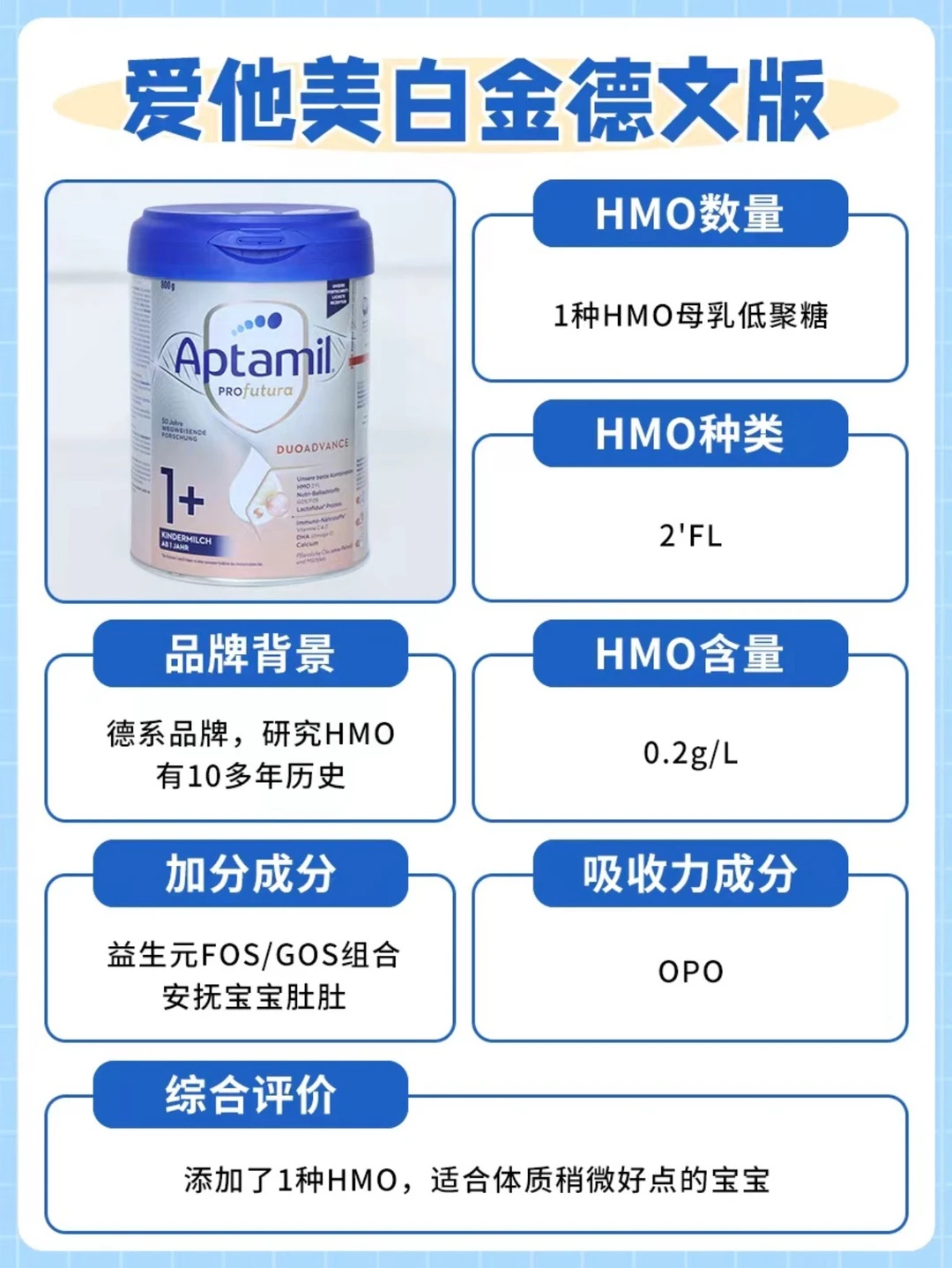 爱他美白金德文版:有HMO:2’FL,可以提升宝宝保护力