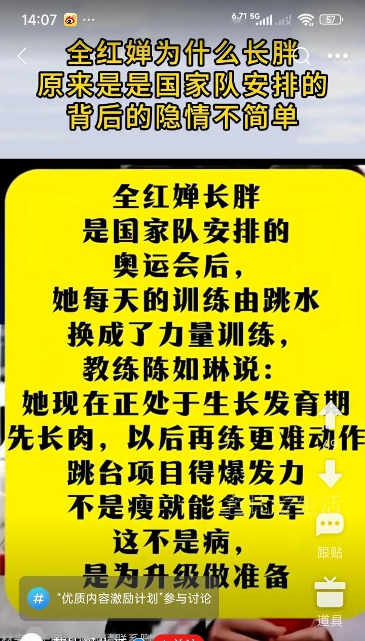 在全运会上,网友都明显发觉,全红婵不但长高了,更是长胖了。尤其是她的一双大腿,分明要比同伴粗了许多。 于是网友说,全红婵胖了,对她的跳水生涯会有莫大的影响。 其实,这是国家队为正处于发育期的全红婵刻意安排。先长肉,然后再练更难的动作,是为全红婵升级做的准备。