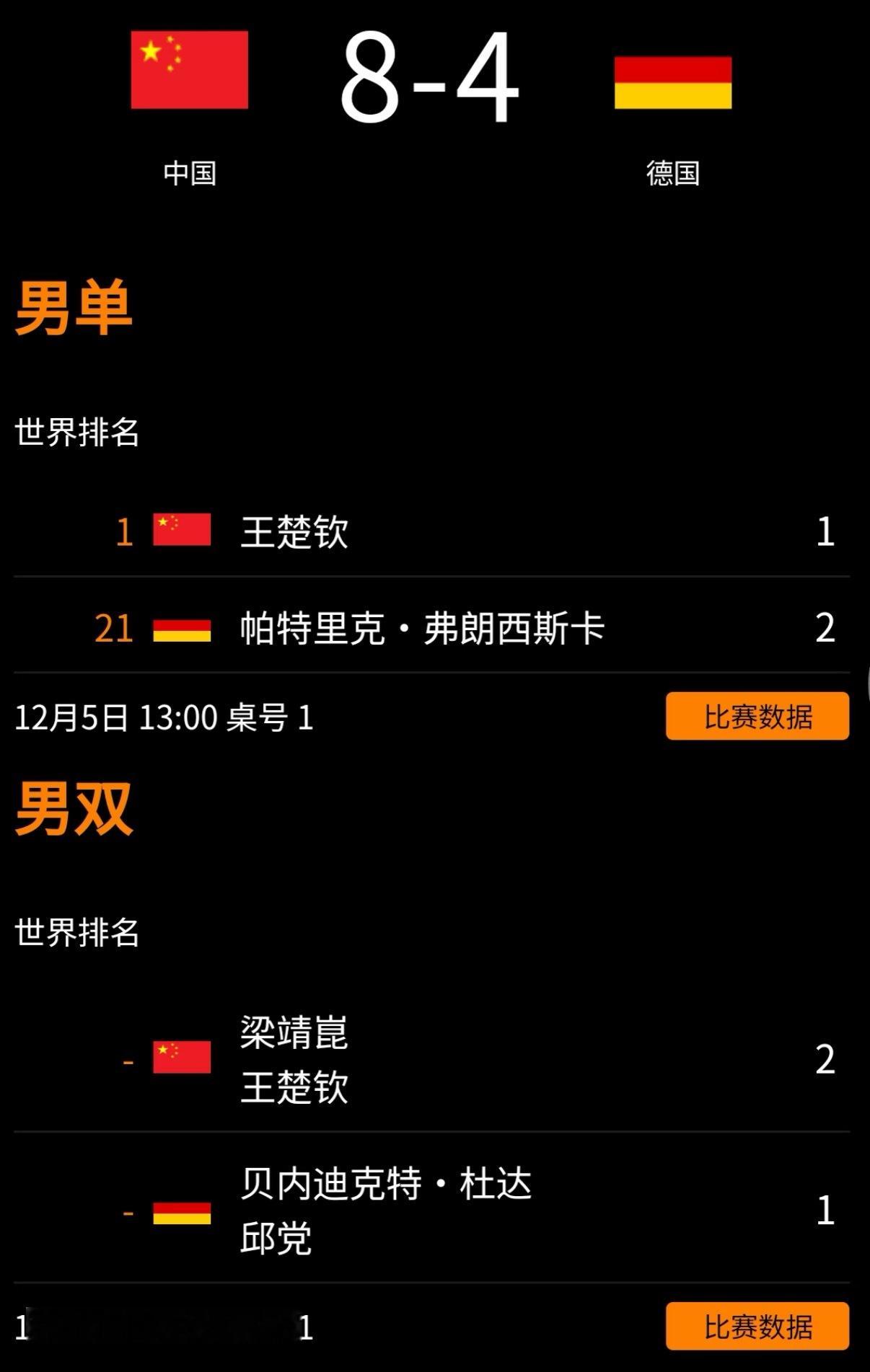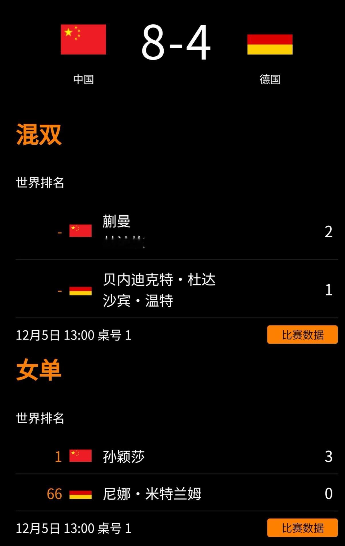 2025乒乓球混团世界杯,中国8比4战胜德国豪取七连胜!大赛到目前为止最艰难的一场球,德国男队今天打出了非常高的水准!男单,男双,混双都拿到分这场男双真的打的很精彩!国乒8比4德国国乒混团世界杯七连胜王楚钦梁靖崑2比1邱党杜达