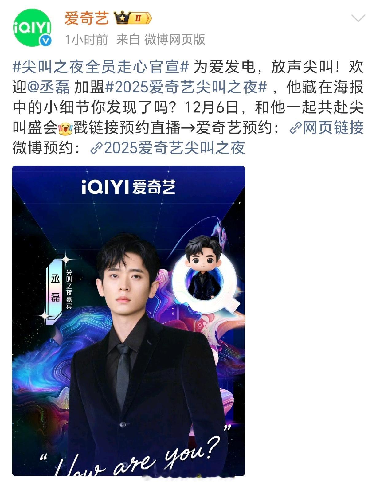 丞磊 爱奇艺尖叫之夜正式官宣磊子哥最近拍的新剧太太太合我胃口了,路透苏感十足,期待出席活动