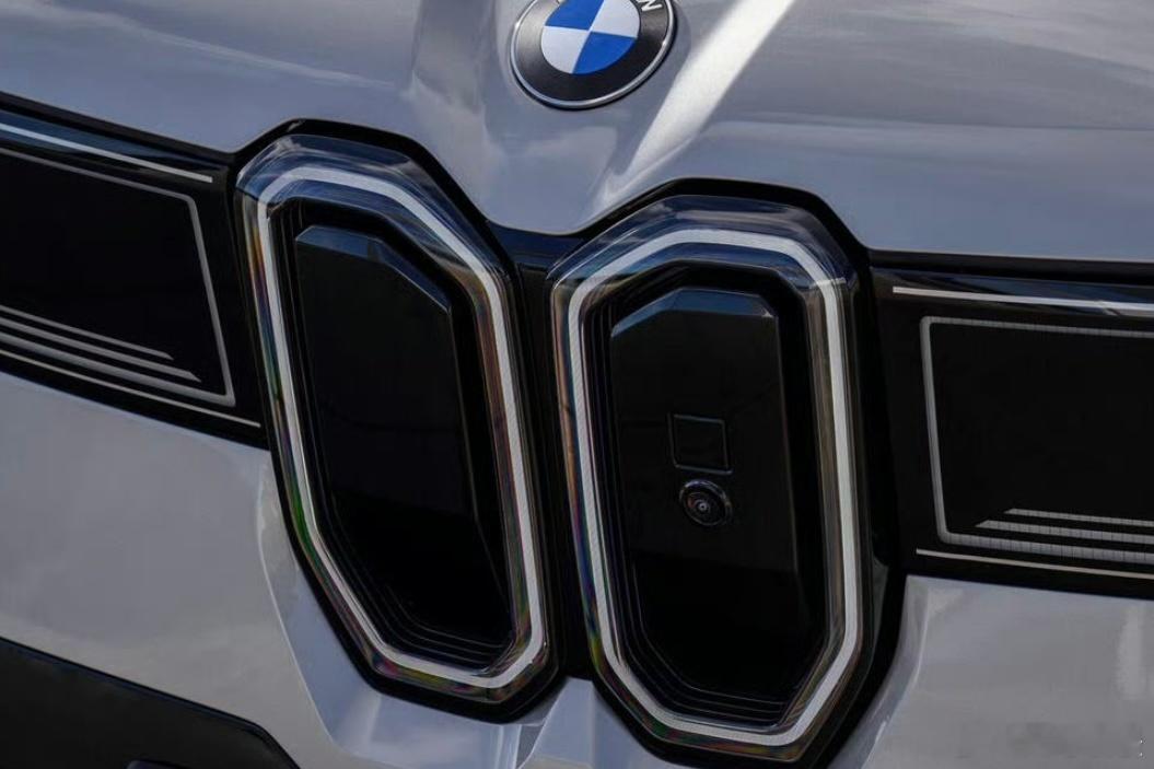 新iX3的细节图里,前格栅鼻孔左边藏了个摄像头,右边空着,中控是个歪歪扭扭的平行