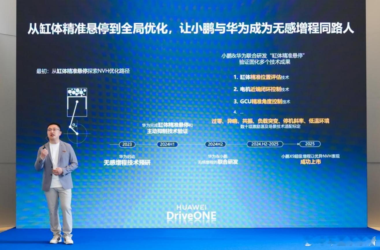 强强联手!小鹏全球首发华为DriveONE下一代增程发电机近日,小鹏汽车和华为在松山湖联合发布了小鹏X9超级增程,并展示了华为DriveONE下一代增程发电机。这套系统是小鹏鲲鹏超级增程技术的核心,旨在解决传统增程车在续航、动力和静谧性上的痛点。据了解,新发电机的功率密度达1.88kW/kg,工况发电效率超过92%,配合大电池和大油箱组合,使X9超级增程在全电模式下续航长、亏电时动力也能稳定输出。同时,增程器通过主动停缸和去旋变控制技术,实现几乎无感的启停体验,NVH降噪≤0.5dB,让驾驶体验更接近纯电车。在研发过程中,小鹏和华为解决了四大技术难题:空间布局、发电效率、保电能力与动力一致性、整车静谧性。比如在空间布局方面,小鹏汽车与华为选择通过发电机与电控的高集成度设计,将发电机Y向尺寸极致压缩至≤230mm,再结合小鹏汽车的前舱一体压铸技术,实现了前舱空间利用率的行业突破。X9超级增程全球首发搭载这套系统,标志着“可油可电、无感增程”的方案落地。它不仅为大七座增程车型提供了实用续航,也为未来增程技术发展提供了参考。汽场全开小鹏汽车华为 (原创/欢欢)