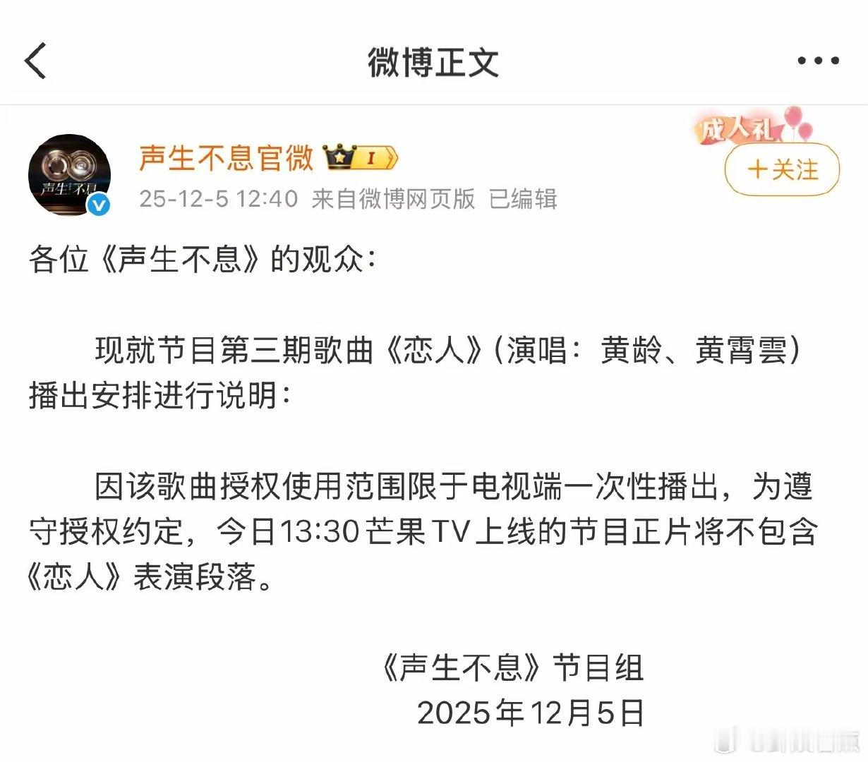 声生不息回应恋人版权问题 音综版权有多难?边录制边清权是行业常态,《恋人》授权芒