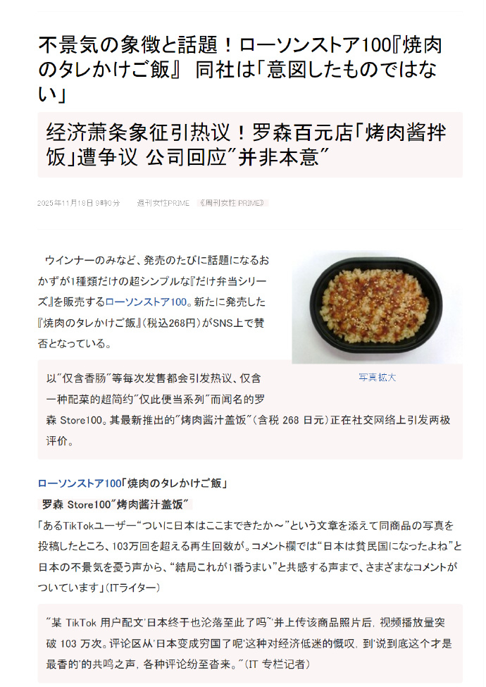 🔻幽默老日:老中400日元能吃到红烧肉套餐是“消费不行”。🔻那老日268日元