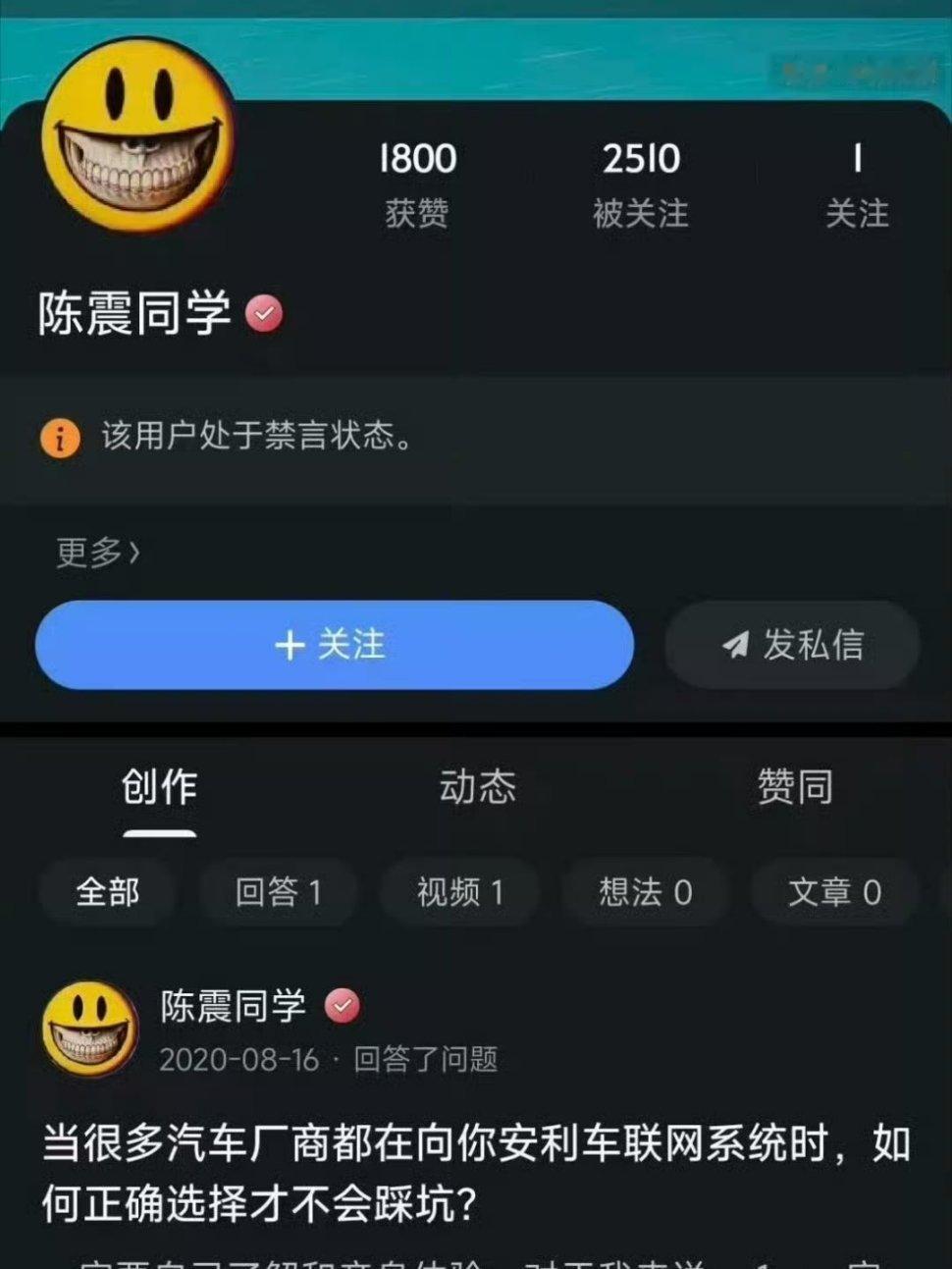 陈震多平台被禁言 陈震全平台被禁言了,微博、抖音、小红书,以及多年未更新动态的知乎。