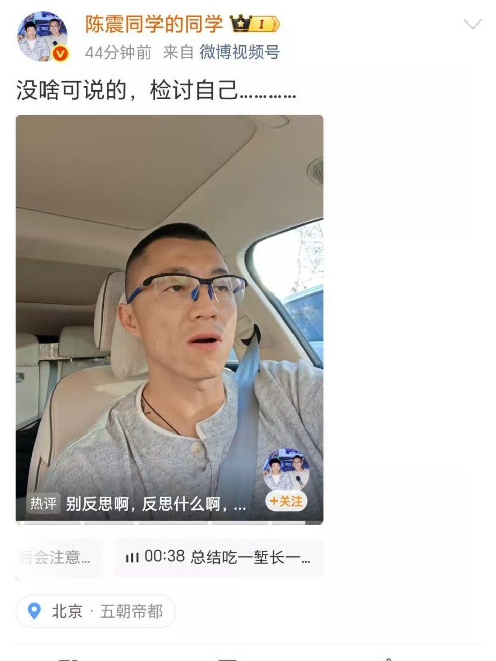 陈震多平台被禁言 陈震全平台被禁言了,微博、抖音、小红书,以及多年未更新动态的知