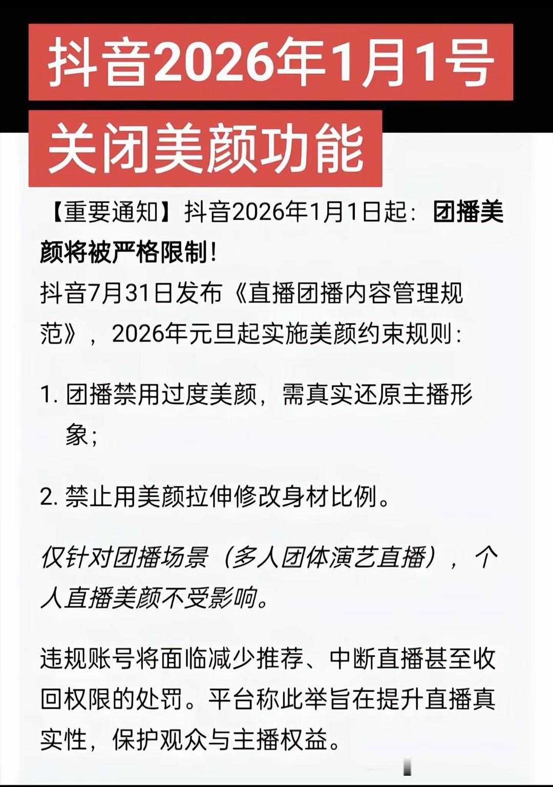 明年开始抖音平台直播将禁止开美颜?如果是真的,就没什么人开播了,毕竟长得好看的人