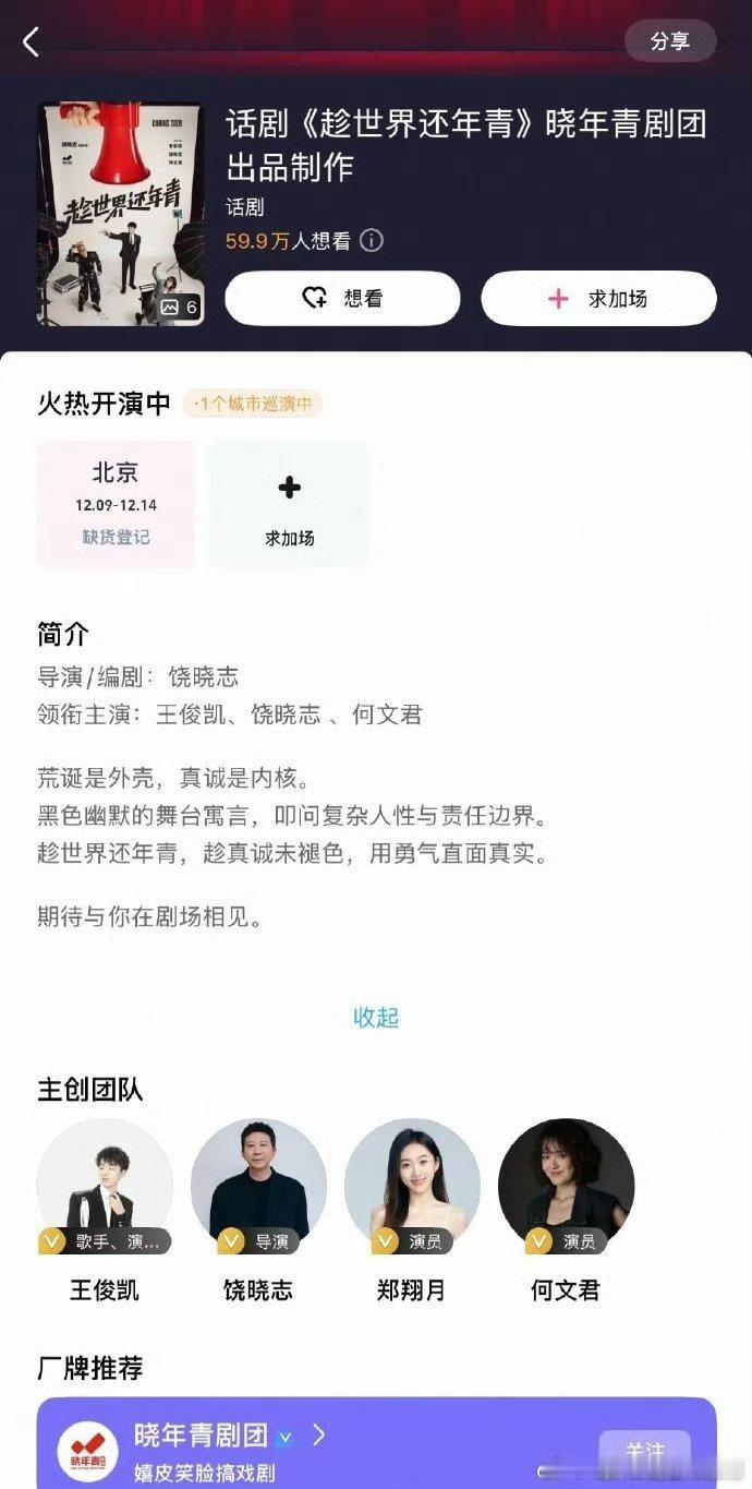 王俊凯主演的话剧《趁世界还年轻》破纪录,5秒售罄 好厉害
