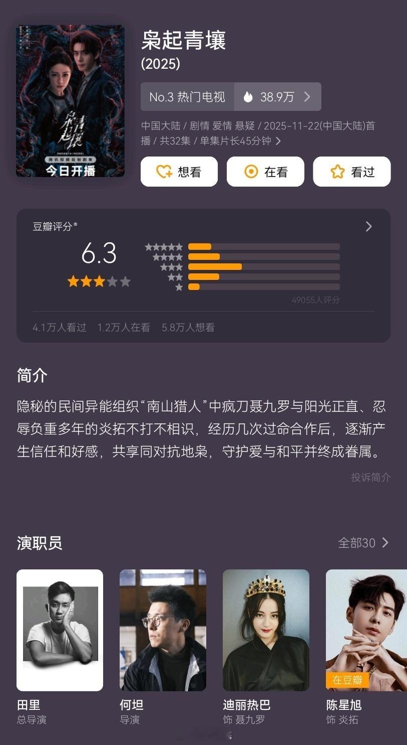 陈晓、孙千《大生意人》豆瓣开分7.3迪丽热巴、陈星旭《枭起青壤》豆瓣开分6.3这