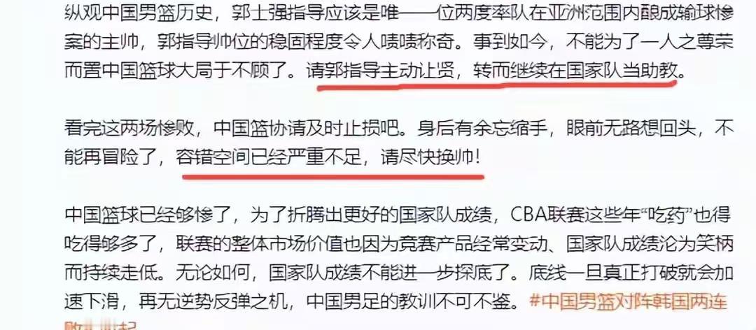 中国男篮近期两场世预赛全部告负,尤其是输给韩国队一役表现低迷。球队国际排名已跌至亚洲第11位,创下历史最低排名。三个月前亚洲杯虽取得亚军,如今状态却明显下滑。 主帅郭士强的执教受到不少质疑,有评论指出其用人安排存在问题。从其执教经历来看,无论是此前带领辽宁队在决赛遭逆转,还是2009年亚锦赛失利,都与他的临场指挥有一定关联。如今执教国家队,战术体系仍显单一,进攻套路不够丰富。部分球员状态持续不佳,却依旧被委以重用,这也引发了外界讨论。 目前篮协承受较大舆论压力,已有媒体人公开呼吁换帅。郭士强亟待调整执教策略,若国家队成绩继续下滑,局面将会更加被动。