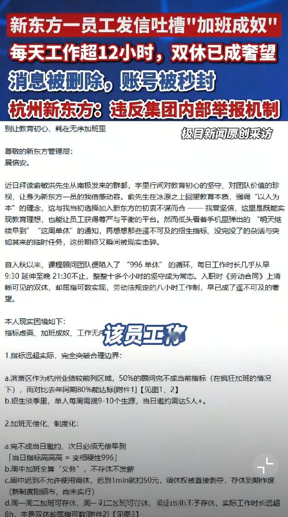 俞敏洪又被吐槽了,新东方员工发全员信控诉管理问题,账号光速被锁,网友:说好的欢迎