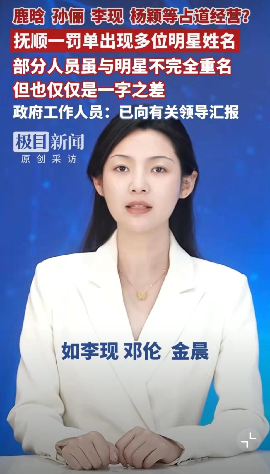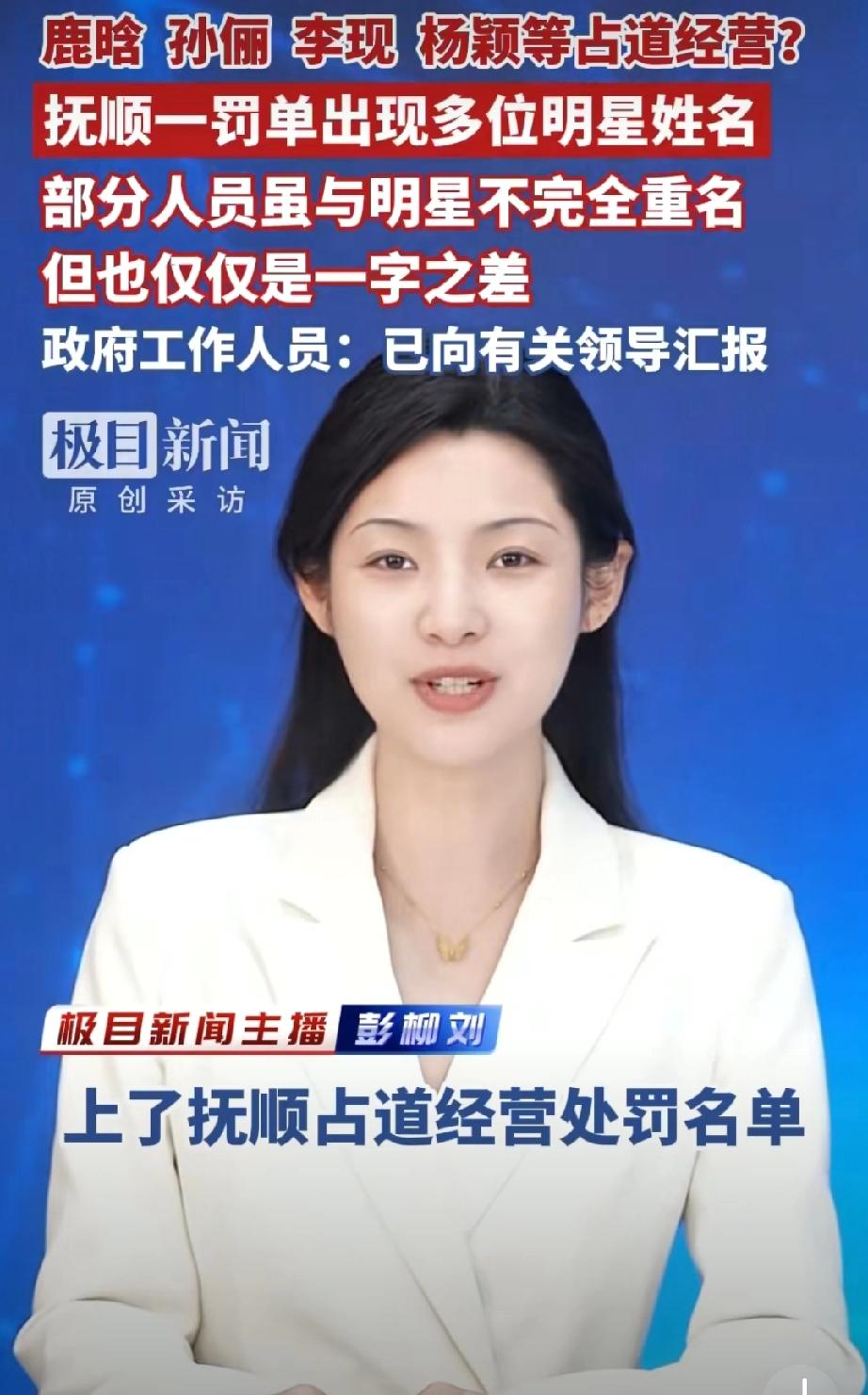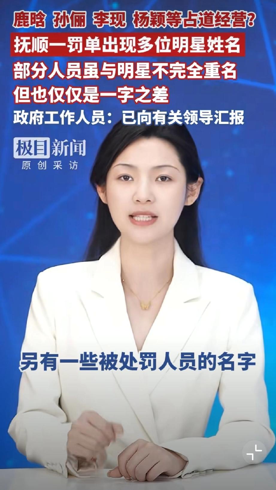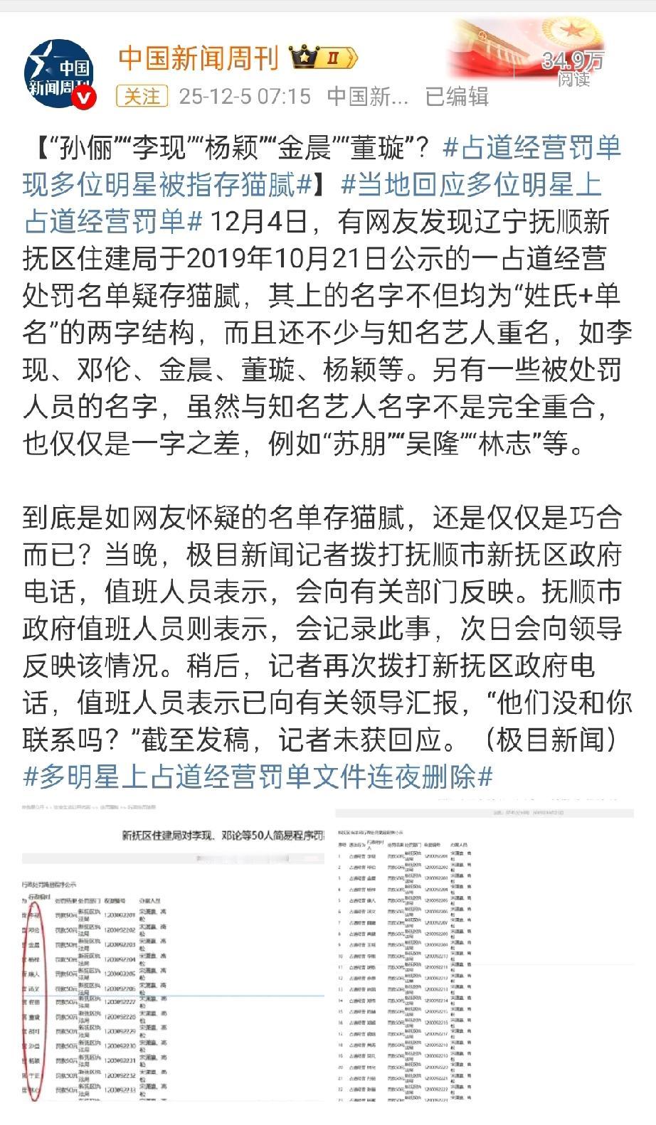 多个明星姓名上住建局罚款名单,抚顺新抚区:已成立调查组核实。,新抚区住建局2019年10月21日发布了对50人占道经营的简易程序罚款公示,其中包括李现、金晨、胡歌、鹿晗、陈赫等多个明星名字;还有疑似将明星艺名删字后列在该名单上的情况,如佟丽、林心、任贤、范冰、林志等。