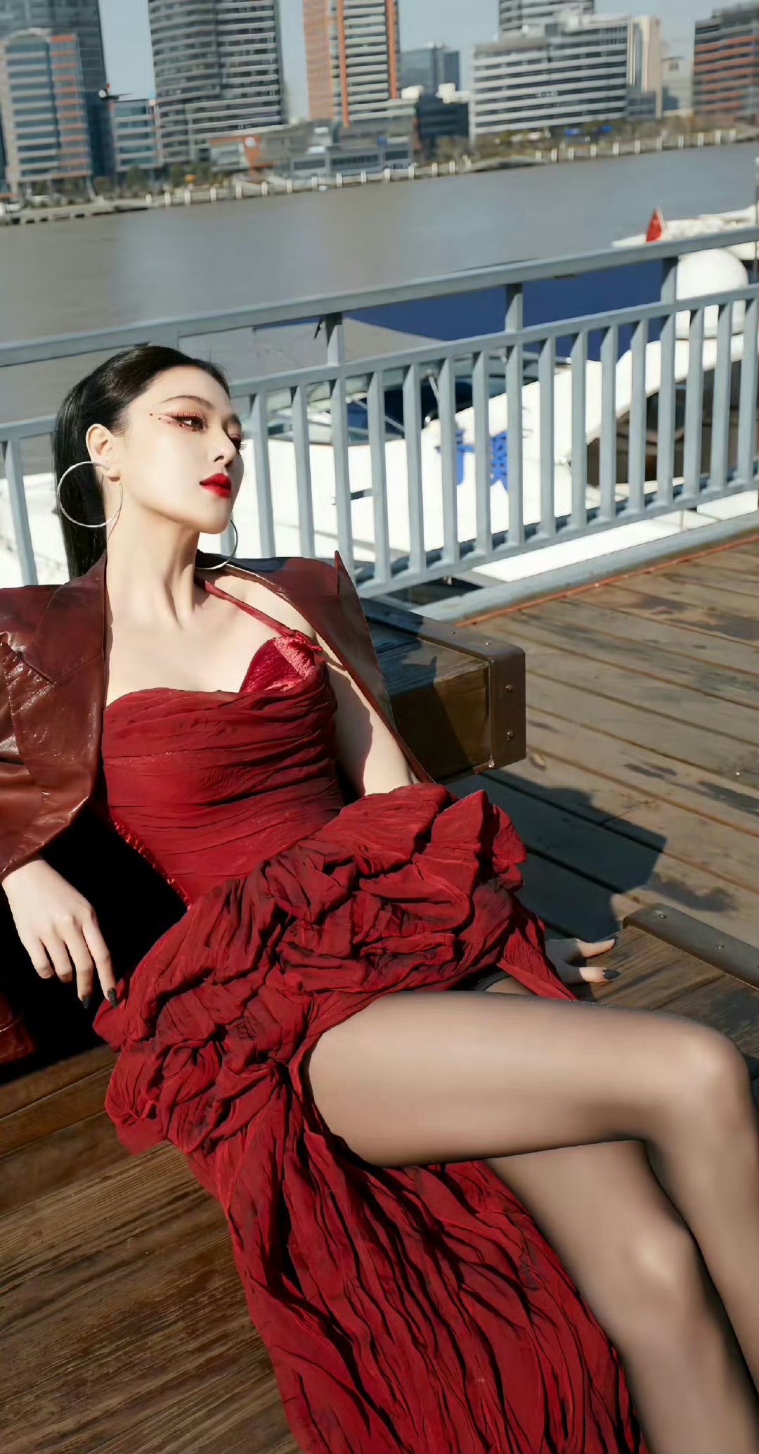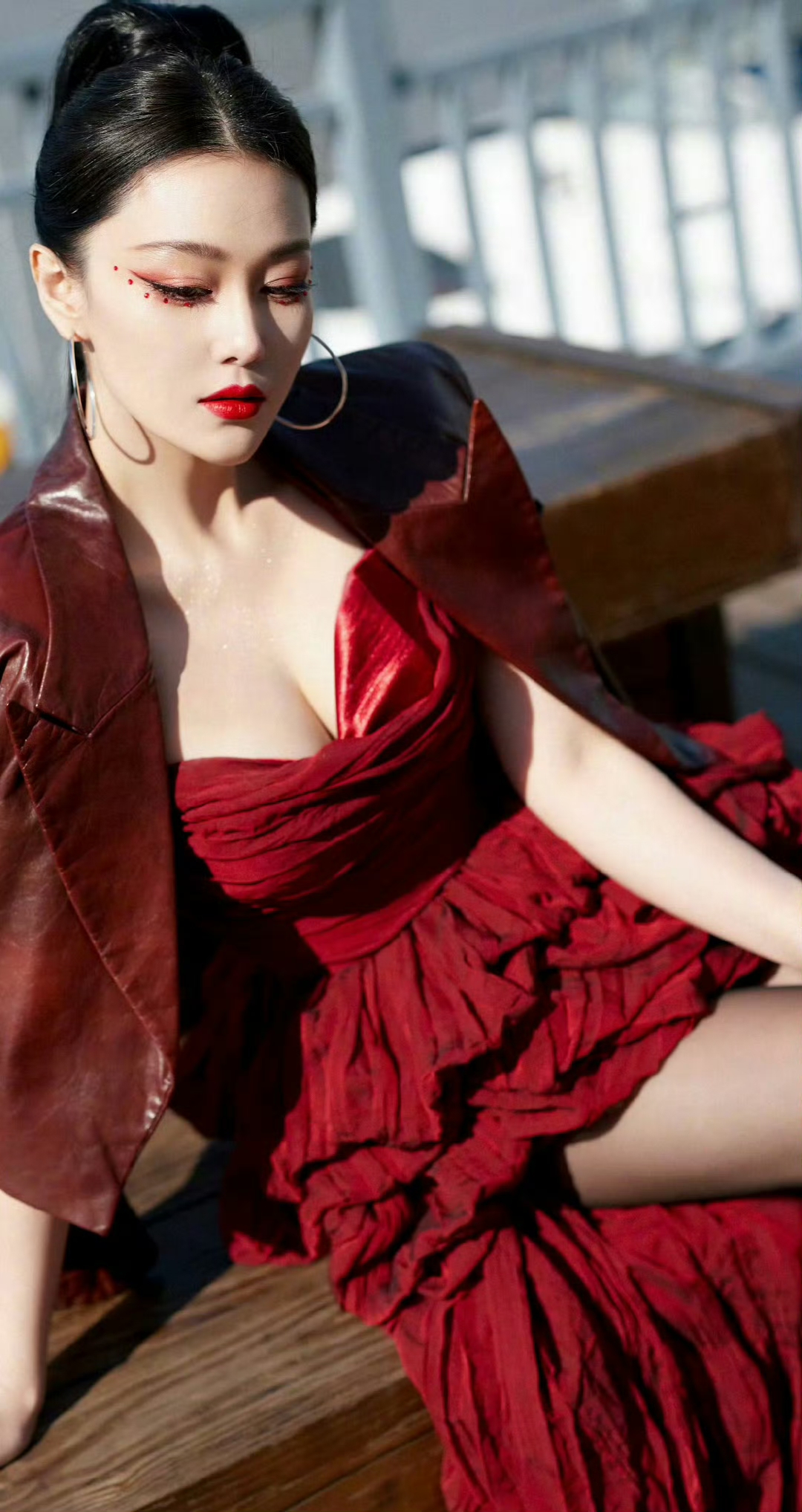 红装暴击张馨予 烈焰红唇👄搭配性感黑丝,冷冽又贵气~