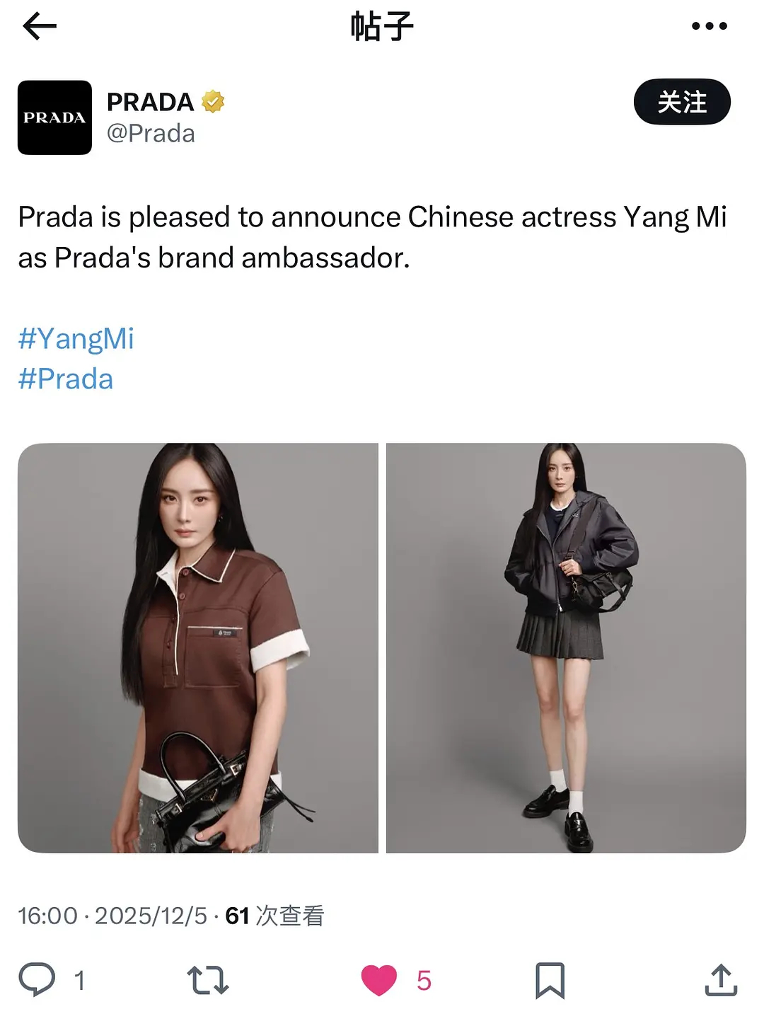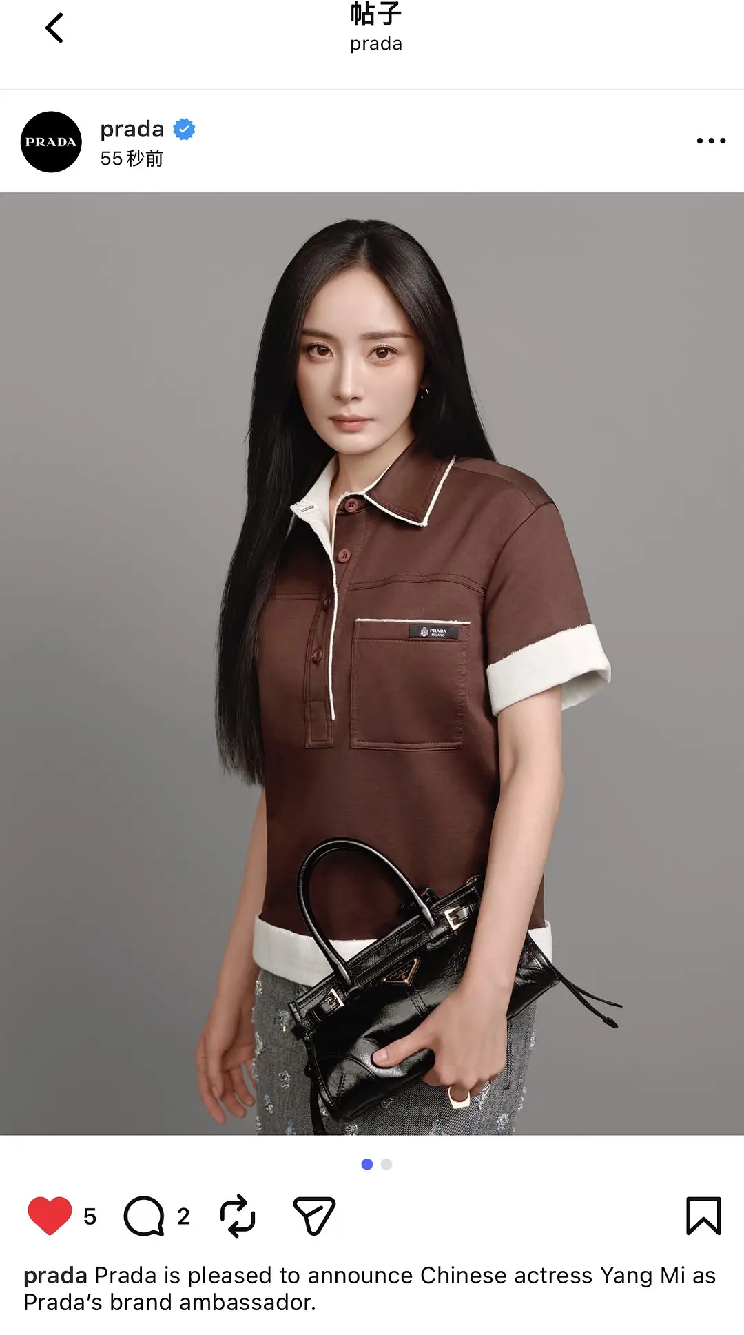 杨幂 我都僵硬了恭喜杨幂xPrada品牌代言人社媒全体官宣 🍯好适合