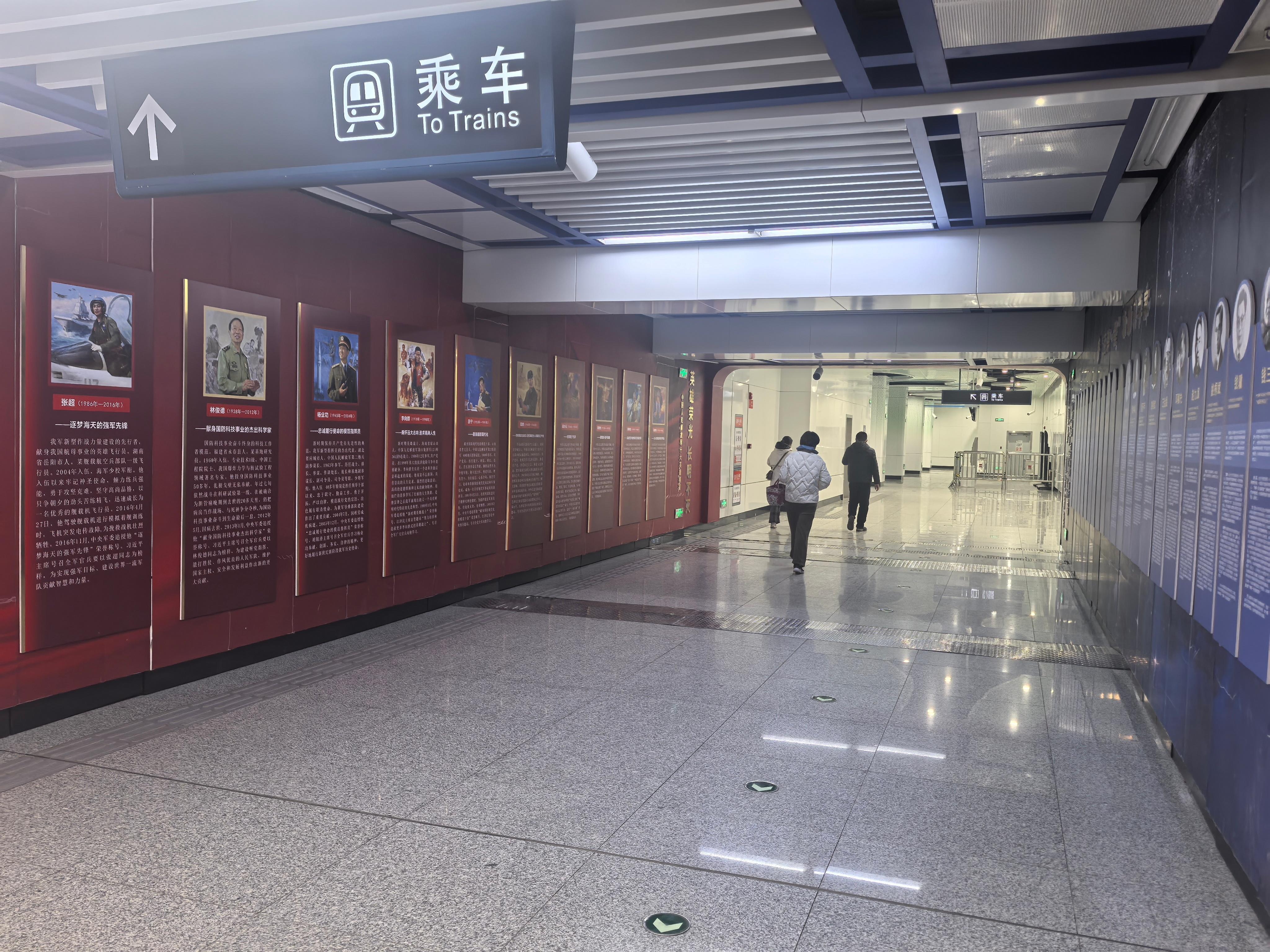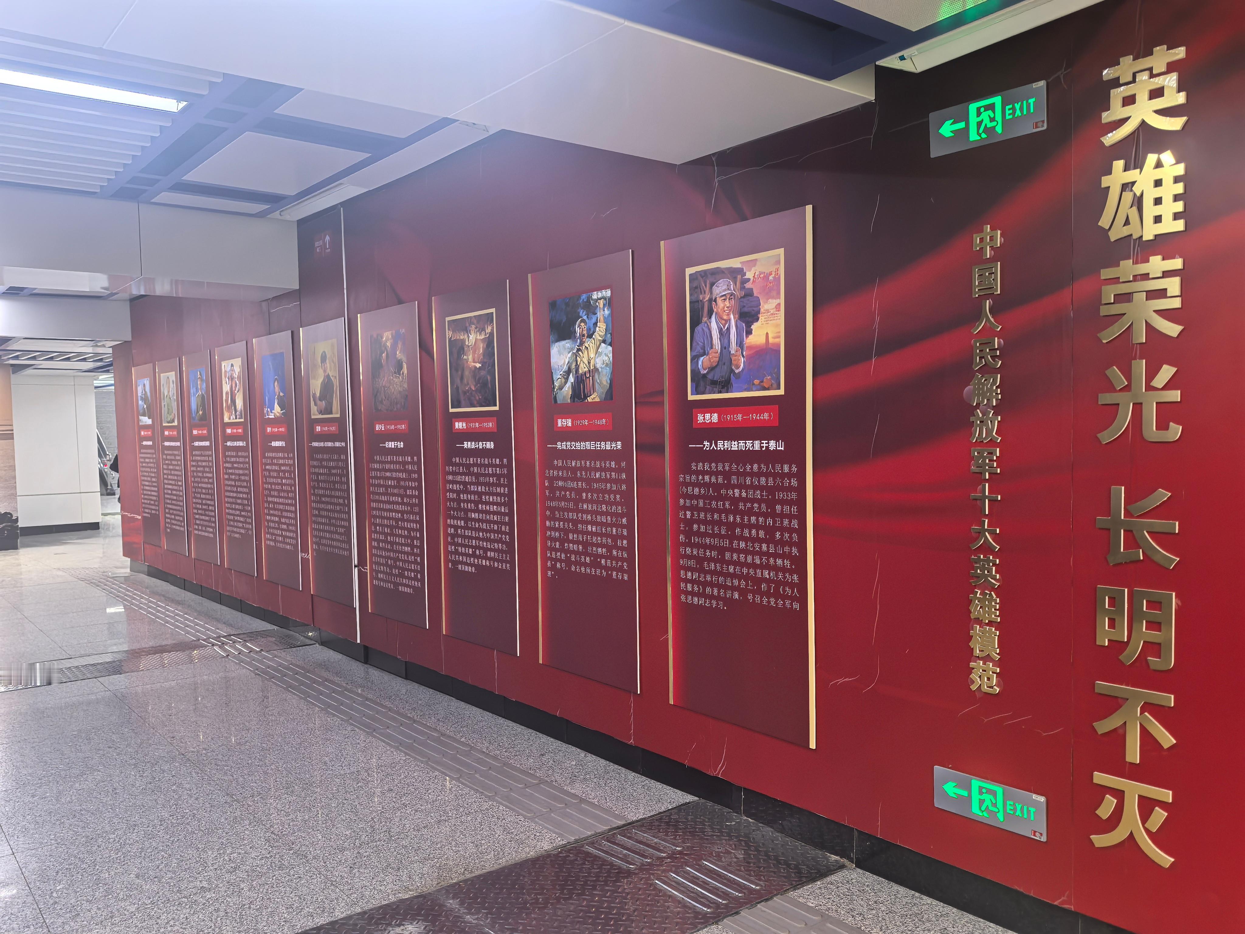 刚乘坐,在6号线与8号线的交汇站万寿南路站C口,看到“幸福不易·铭记功勋”致敬国家英模功勋主题通道,认真看了会,尽管多数英模功勋的事迹,此前都有了解过,但内心依旧触动。真心建议,这一主题通道展能永久保留,供往来乘客、旅客参观,崇尚英雄,才能产生英雄;敬仰先烈,才能告慰忠魂。满心向党满谈历史整个展区由三大板块组成:“勇攀高峰 国之脊梁”集中展示“两弹一星”精神及钱学森、邓稼先等23位功勋科学家生平,回顾他们隐姓埋名、攻坚克难的奋斗历程;“英雄荣光 长明不灭”则通过“十大英模”挂像与事迹,讲述张思德、董存瑞、黄继光、邱少云等英雄舍身为国的感人故事;“山河永念 英雄回家”介绍在韩中国人民志愿军烈士遗骸回国的历史背景与移交情况,表达对英烈的无限追思和对和平的坚守。该通道自地铁8号线开通后便同步开放,乘客可在万寿南路站C口出站途中沉浸式参观,成为市民致敬国家英雄、重温功勋精神的新打卡点。在我看来:他们,才是最值得追的星。我党百年征程中,是热血、无畏的他们,建立了扬眉吐气的新中国;是求索、创新的他们,开创了盛世太平的新气象;是担当、奉献的他们,开启了星辰大海的新征程。