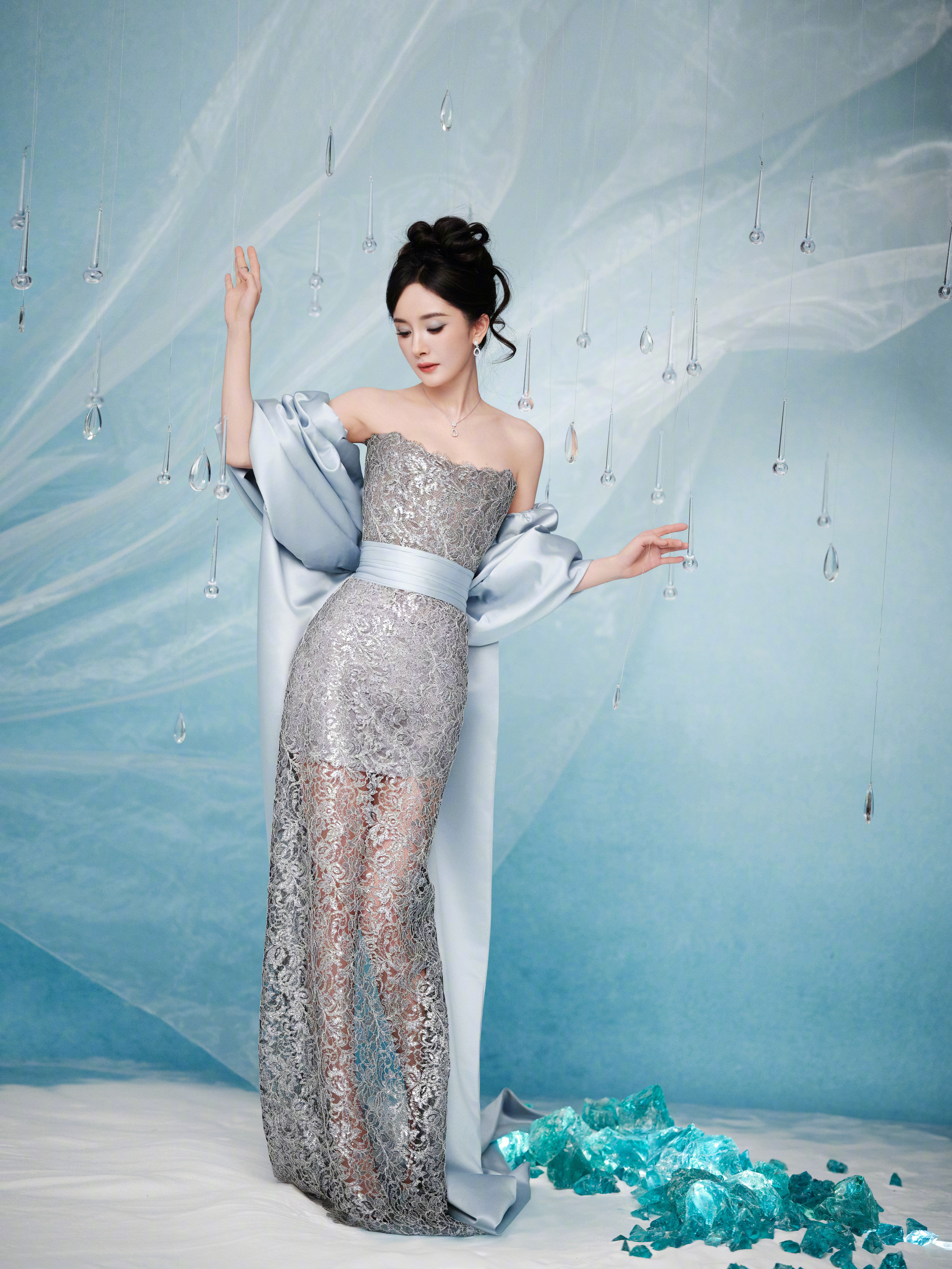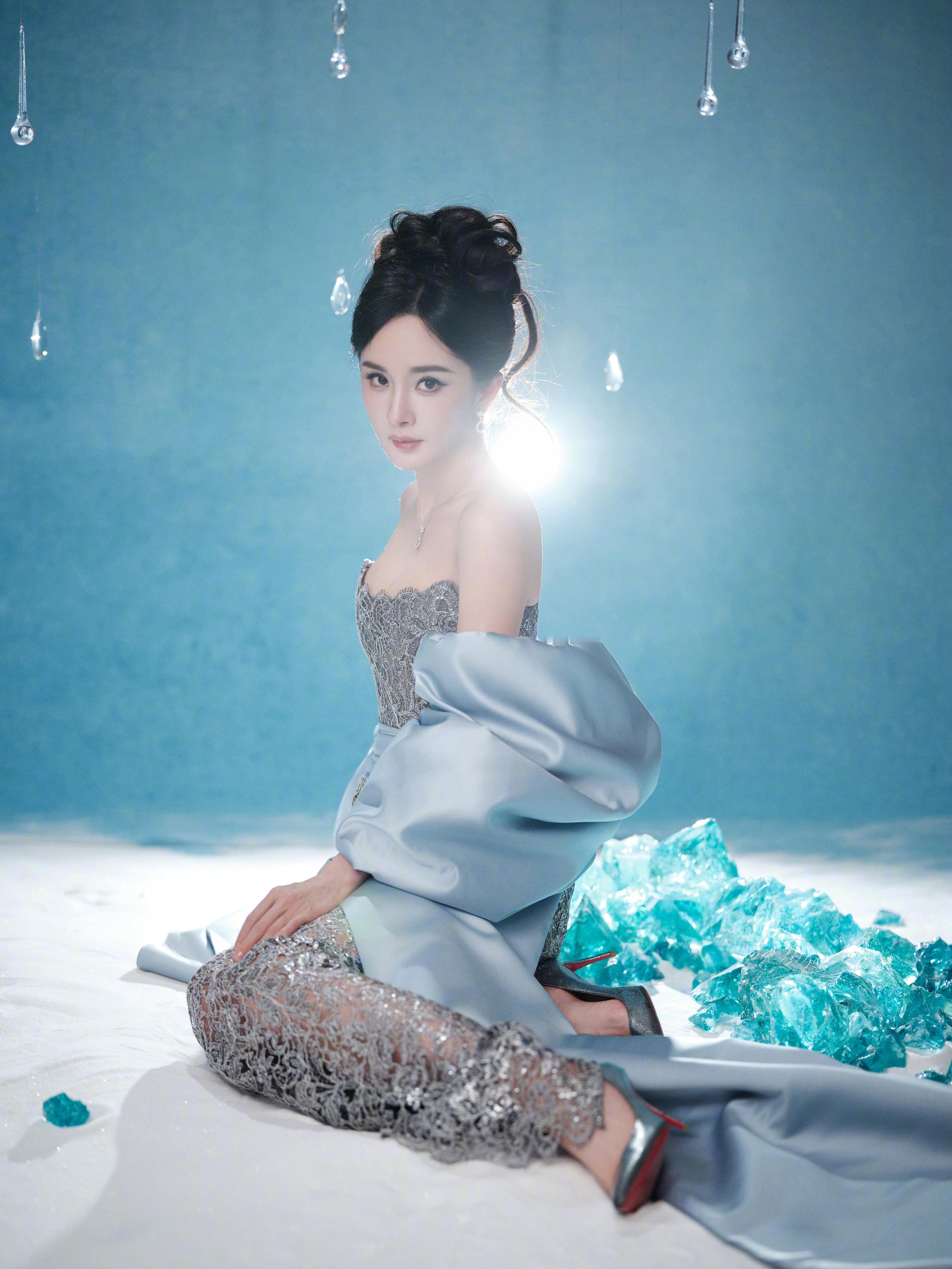 杨幂这是cos冰雪女王啊杨幂蓝色镂空裙杨幂杨幂