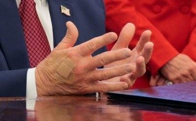 特朗普这手背上的一幕真把大伙儿看懵了! 昨天还是两块显眼的“补丁”,今天变成了一块,这到底是刚拔了输液针,还是那个号称“身体壮如牛”的体检报告在骗人? 这反差感瞬间拉满,看得咱们吃瓜群众心里直犯嘀咕。 大家伙儿第一反应肯定和我一样,这位置、这形状,像极了咱们平时打点滴留下的痕迹。 毕竟也是七十多岁的人了,要说为了竞选连轴转身体吃不消,倒也合情合理。 可这事儿就怕细琢磨,前脚刚高调晒出“完美体检单”,后脚就贴着胶布现身,这不想让媒体多想都难,总感觉这剧情有点对不上号。 不过,刚去扒了眼CNN那边的最新消息,这瓜又有反转。 特朗普那边的发言人火速出来回应了,居然说这只是常规的“皮肤护理”,压根不是什么医疗治疗,更没有生病这一说。 好家伙,这解释咱们是信呢还是信呢? 虽然官方极力撇清健康问题,但这“护肤”护到手背上贴胶布,多少有点让人摸不着头脑,老特的精致程度确实超乎咱们想象。 到底是真身体亮红灯在硬撑,还是老特为了形象真在搞什么“黑科技”护肤,咱们手里也没实锤,不好乱下定论,只能听官方一面之词。 但这事儿透着一股子“欲盖弥彰”的味道。 你们觉得这解释靠谱吗? 这像是单纯的护肤手段,还是另有隐情? 咱们评论区见,看看大家的火眼金睛!