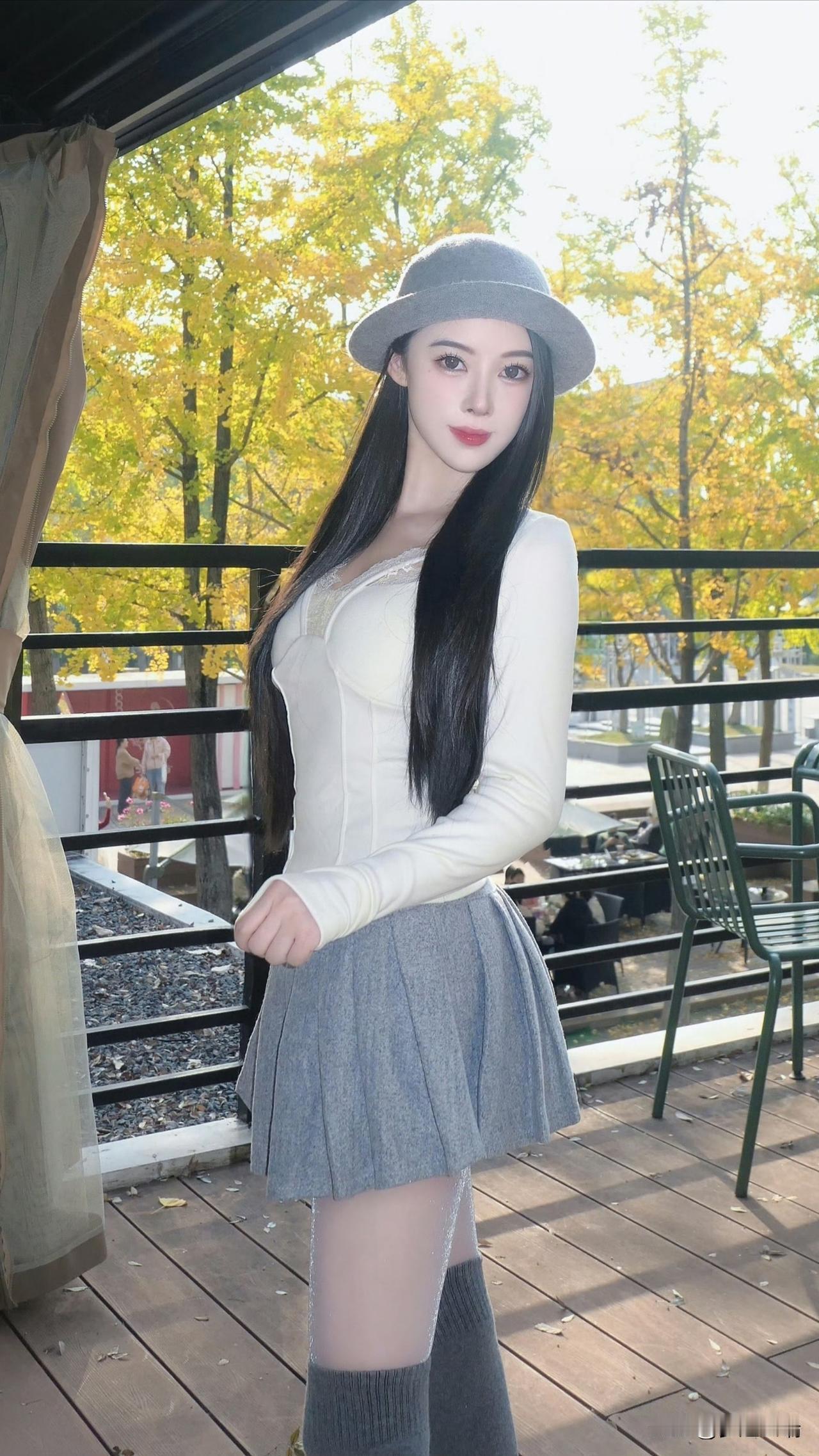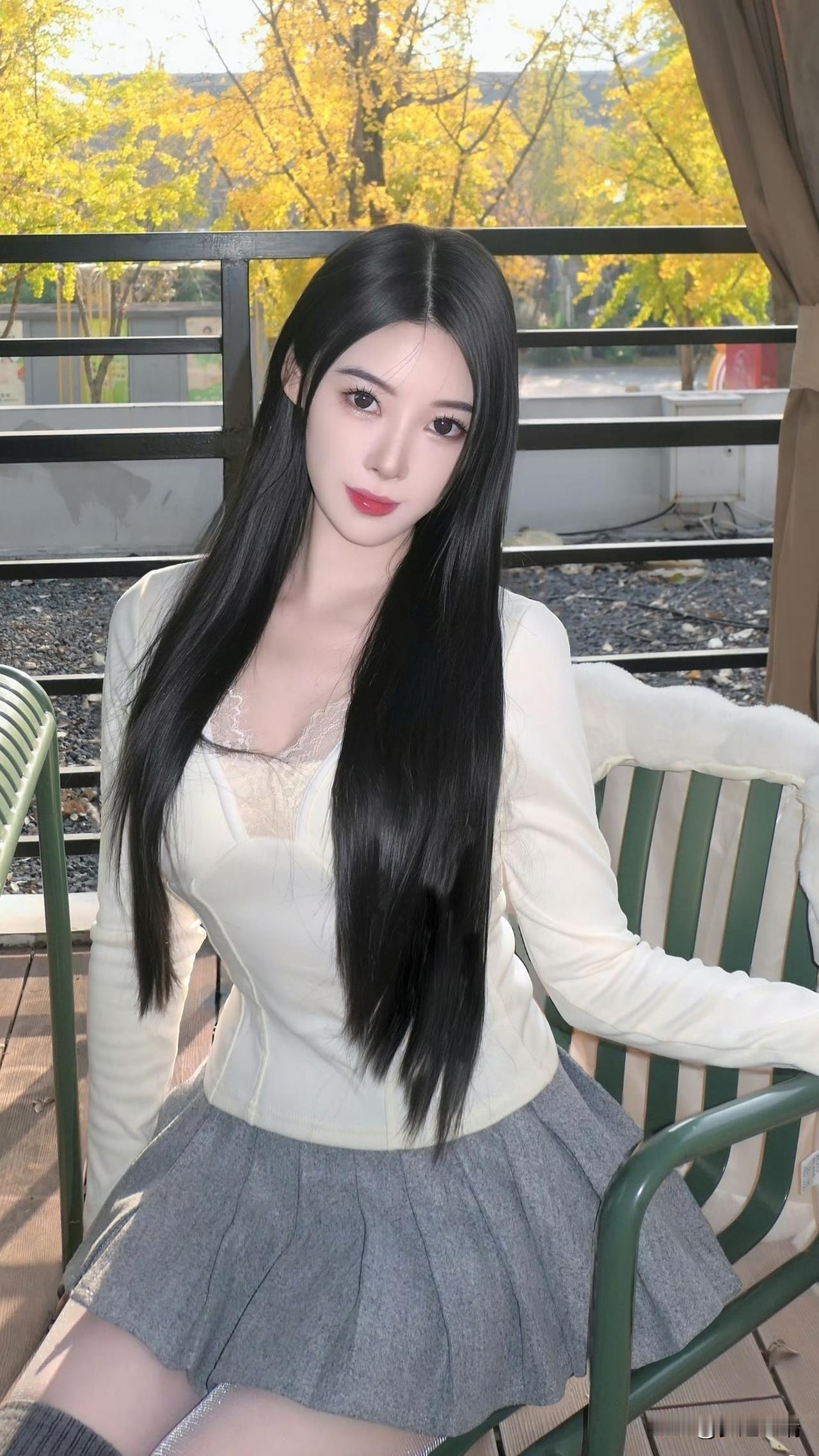秋日暖阳下的少女,黑发红唇,清新动人。
