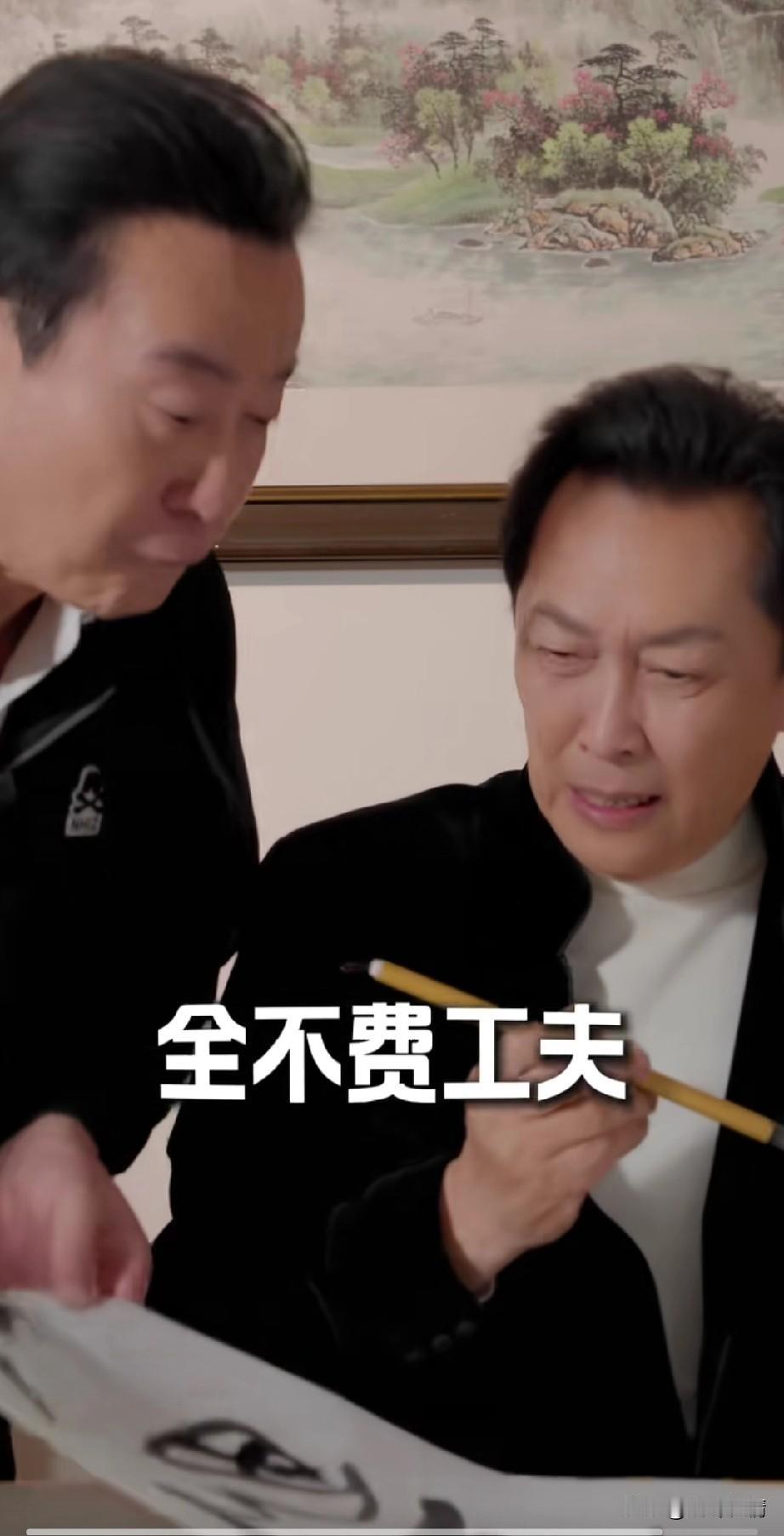 两位老戏骨合起伙来拍视频, 还真是很有趣, 唐国强在练字, 旁边的方框里面丁义珍就出现了, 还以为他们在打视频通话, 丁一珍问唐国强需要毛笔吗? 唐国强表示还真需要, 问他在哪里? 是在家中吗? 在的话打车过来送笔, 丁义珍表示不用这么麻烦, 从框中给直接给谭国强递上了毛笔, 原来后面是一块纸板, 差点以为两人在打视频电话, 丁义珍看着唐国强写的毛笔字, 直接拿起来就走, 唐国强表示还没盖章呢, 两人这表演太逗了, 大家对于两位老戏骨联合起来搞笑怎么看? 唐国强 唐国强手稿 唐国强版出师表 珍珍对口型演技 丁元珍 丁义涛