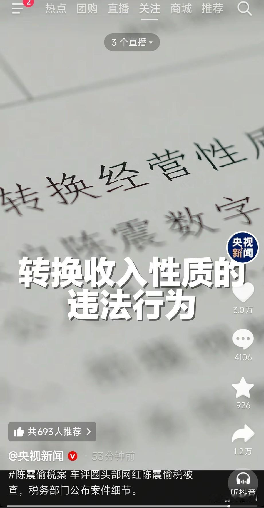 好吧这次陈震,这位吃牛肉面不要面的自媒体大网红,算是彻底歇菜了。不是他故意偷税漏税,也不是因为他最近的发言,而是这次被央妈单独拎出来批斗做模板了! 刚才刷到央视新闻单独发了一条短视频,直接点名批评陈震,连马赛克都没打,可见陈震这次偷税漏税的手段属实恶劣了。 主要就是将自己收入广告,以及自媒体赚到的收入,转到自己成立的一个空壳公司上,作为公司的生产经营收入。因为这两者扣税的比例不同,他直接转换了收入取得方式,从而达到偷税漏税逃税的目的,可见行为之恶劣! 也难怪央视这次罕见的,单独拎出来点名批评他了,对此你怎么看?