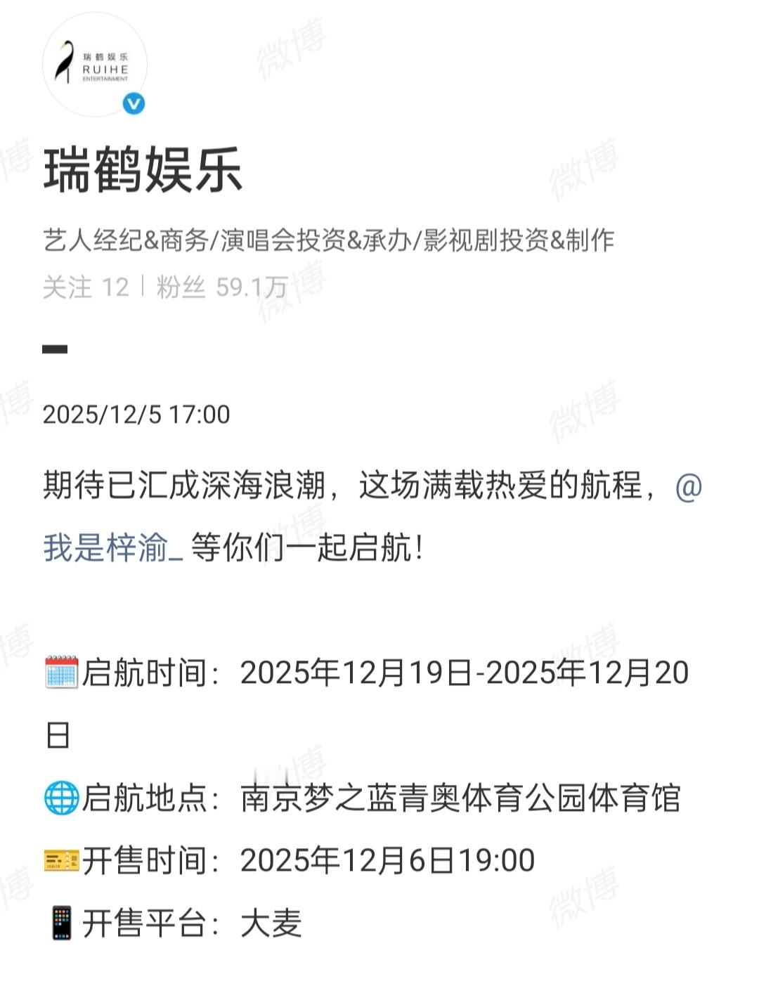 梓渝南京演唱会开售梓渝「游」点意思南京演唱会明日开售⏰19号20号两场12月6日