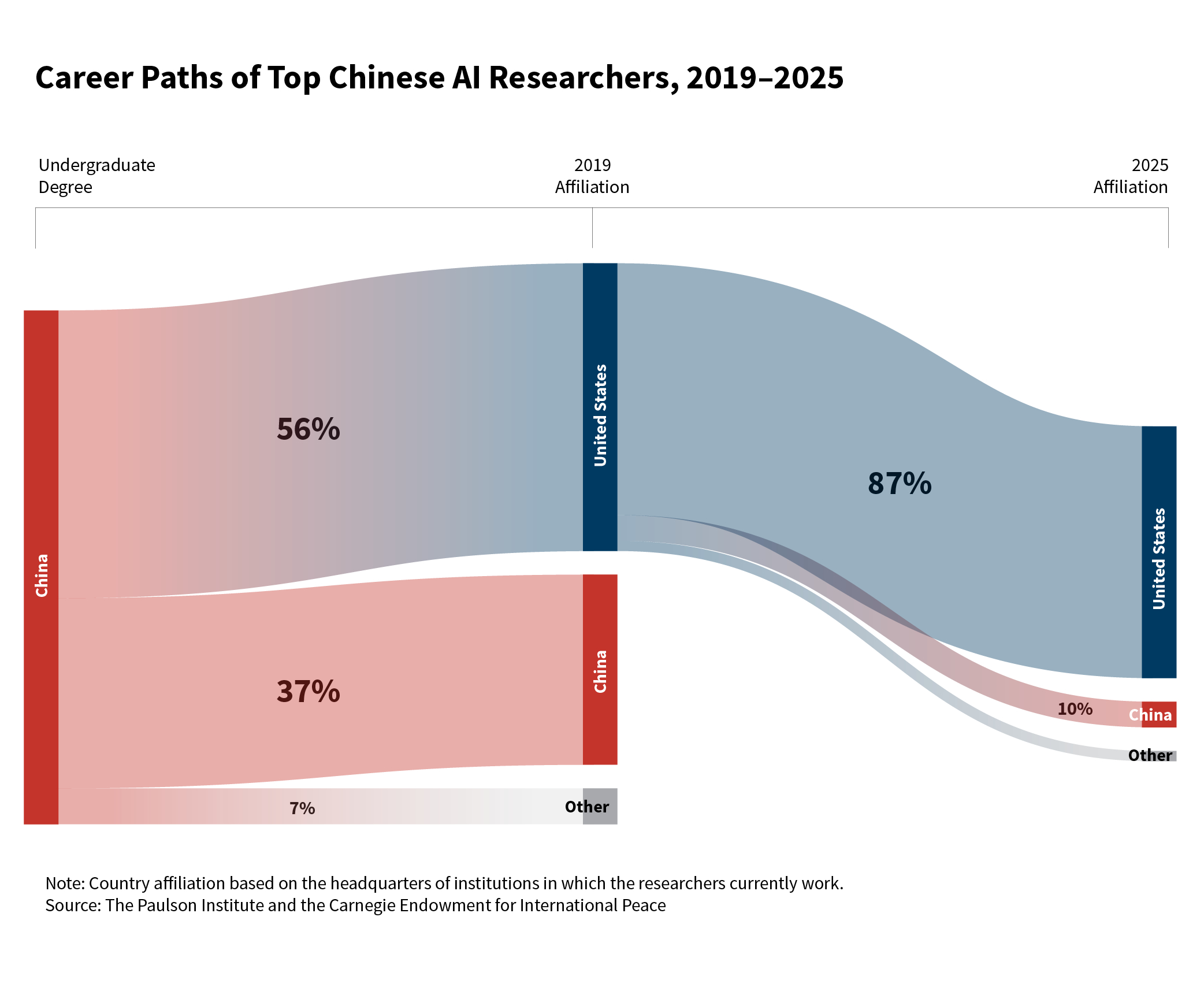 在 2019 年于美国工作的 100 位华裔 AI 研究者中,87 人至今仍效力于美国机构,10 人返回中国,3 人前往其他国家。值得注意的是,返回中国的 10 位研究者均具有极高影响力:2 人创办了科技公司2 人在大型企业担任领导职务5 人成为顶尖高校教授moonshot AI(月之暗面,Kimi 大模型研发公司)创始人杨植麟,正是这 10 位回国研究者之一。——Matt Sheehan