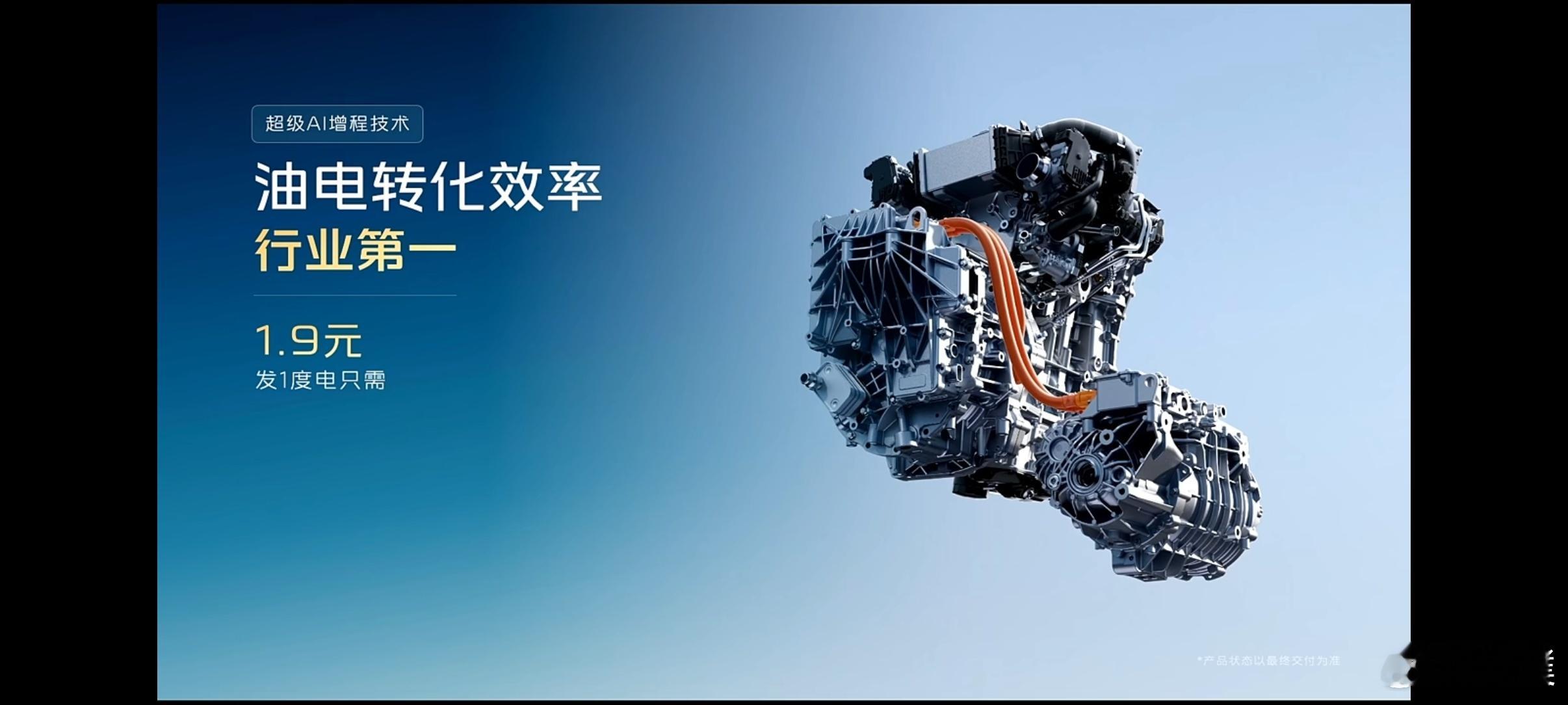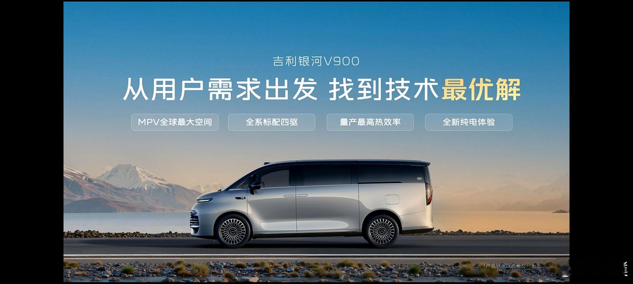 上个月的广州车展吉利银河V900正式亮相,说实话就它这种短车头的标准MPV造型,我是真的没敢往增程动力方面去联想。但是今天的发布会上这台车的增程版它就来了。它采用了「叠竖布局」的增程电驱,整体的体积只有0.4m³,整体的集成度非常的高,简单来说就是原来宽敞的大平层,现在改成了LOFT,节省出来的空间,让它能够做到全系双电机四驱。1.5T的增程器,使用了「驭风火龙卷」燃烧系统,热效率为47.26%,1L油发电3.77度,每度电1.9元。90kW的发电机,耐高温+高散热,亏电的时候最快车速可以到达155km/h。另外,它还采用了星睿AI云动力2.5,实现能量控制+四驱控制,行驶质感更流畅,减少拖拽感,能耗利用率提高,还能对电池健康进行检测。