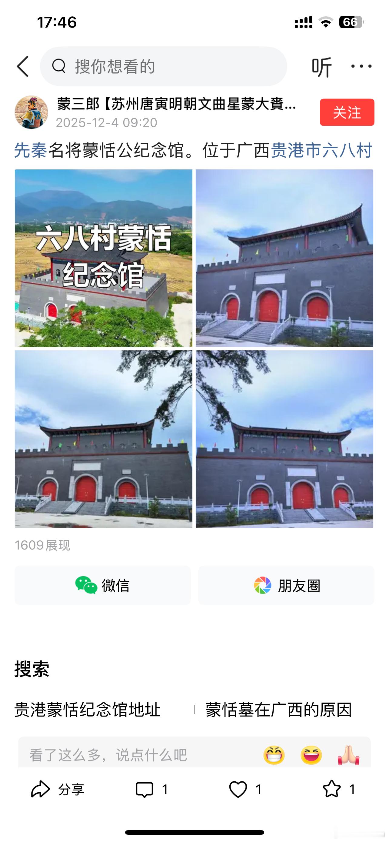 这个蒙恬是秦代北击匈奴的蒙恬吗?先秦名将蒙恬公纪念馆。位于广西贵港市六八村。大门紧琐,如果没有与蒙恬相关的文物,建馆意义何在?广西出现蒙恬相关遗迹(如纪念馆)主要因当地蒙氏家族文化传承与认祖归宗行为。2016年起广西蒙氏访亲拜谒陕甘晋蒙恬墓,强化历史联结,相关纪念设施如贵港蒙恬纪念馆、崇左扶绥蒙姓墓群等均为家族文化纪念遗存,目前并无蒙恬葬于广西的历史依据。