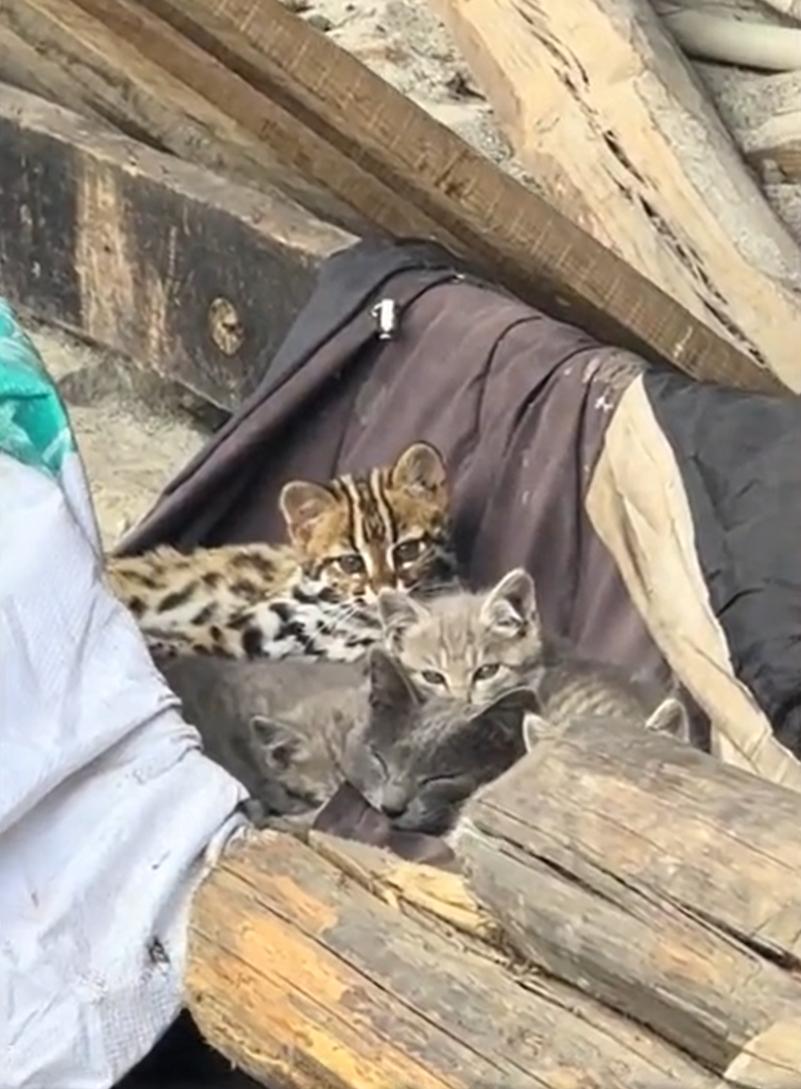 “太神奇了!”四川凉山,一男子爬山时路过一户农家,无意间往柴火堆里瞥了一眼,发现几只小猫窝在一块儿。本来以为就是普通的小土猫,可细看之下,其中一只的花纹特别不一样,身上带着类似豹子的斑点,眼神也格外野性。男子心里一动,掏出手机查了查,结果吓了一跳:这可不是家猫,而是国家二级保护动物豹猫 男子分析,估计是这只小豹猫在山里跟家人走散了,不知道怎么溜达到了村子附近,又被好心的母猫捡了回去。有趣的是,那只母猫当时还在哺乳期,身边还带着自己的几只小猫崽,但它一点没排斥这只“外来客”,反而把它搂在怀里,和其他小猫一起喂奶、一起取暖 男子在旁边静静看了一会儿,发现豹猫宝宝一点都不怕生,它紧紧挨着母猫,偶尔还会跟其他小猫互相蹭脑袋,睡得很踏实 母猫也把它护得好好的,舔毛的时候每只都照顾到,完全没区别对待。这一幕让人心里一暖,原来母爱真的可以跨越物种。不是一家人,却给了它一个家 说起来,类似的事在自然界里并不少见。动物之间尤其是哺乳动物,常有“收养”行为。有的母性强的动物,只要遇到需要照顾的幼崽,就可能本能地去呵护,不管是不是自己亲生的 这只家猫妈妈也许只是出于养育幼崽的天性,但恰恰是这份本能,让一只本该在野外生存的小豹猫,在迷失的时候得到了庇护 有网友说:这只豹猫崽还能不能回到山林? 目前来看,这还得由专业部门来判断,它毕竟是野生动物,需要的是野外的环境和生存能力,不是长久寄居在农家小院里 不过对农户来说,这种发现就是及时上报,不自己去动,也不故意留下。对小伙子来说,拍几张照片、报个信,就是最大的帮助。对这只豹猫来说,能在走散后碰到一只正在哺乳的母猫,本身就是运气