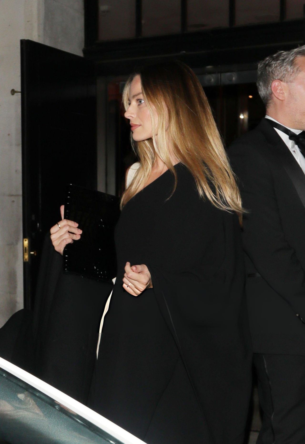 Margot Robbie今日在伦敦参加一场慈善晚宴,穿了一条黑色单肩礼服裙,外搭一件黑色长呢大衣,这一身非常突显气质!