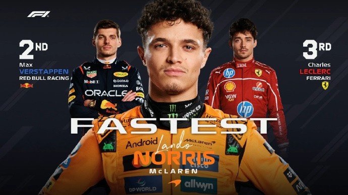 诺里斯单圈最快,维斯塔潘和勒克莱尔分列二三,前三之间只差0.008秒。前十还有安东内利、霍肯伯格、拉塞尔、博托莱托、贝尔曼、塞恩斯和科拉平托。
