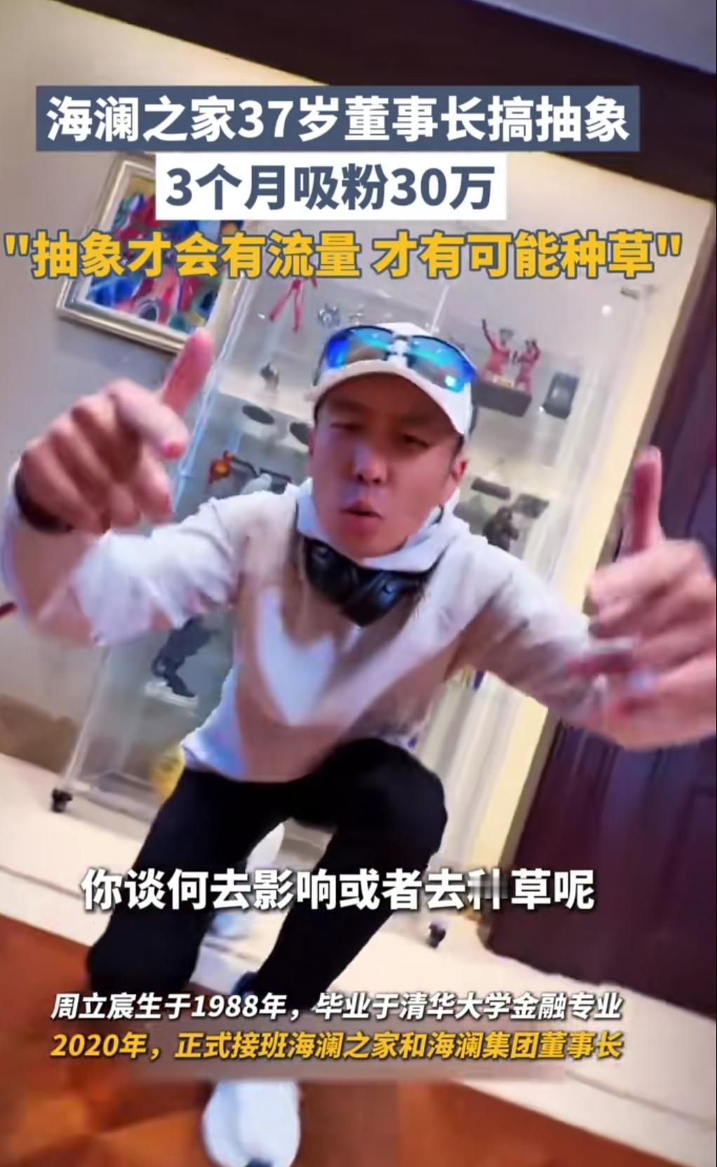 海澜之家董事长彻底放飞了!清华高材生穿大衣演韩剧,戴头套玩梗,三个月圈粉30多万太会整了! 这哪儿是百亿身家的老板,分明是“网红界新晋段子手”!周立宸直言“抽象才有钱赚”,一本正经的会议内容没人看,放下身段搞创作反而出圈,戳中了传统品牌的流量困局。 要知道海澜之家曾是“爸爸装”代名词,还遭遇过库存积压、门店关停的困境。现在不仅老板亲自下场玩梗,还成立了饮料公司跨界,这哪是小打小闹,是逼着自己跳出舒适区。 有人笑他不务正业,可这背后全是清醒的求生欲——老品牌不换种方式说话,迟早被年轻人遗忘。你觉得这种“抽象转型”能长久吗?