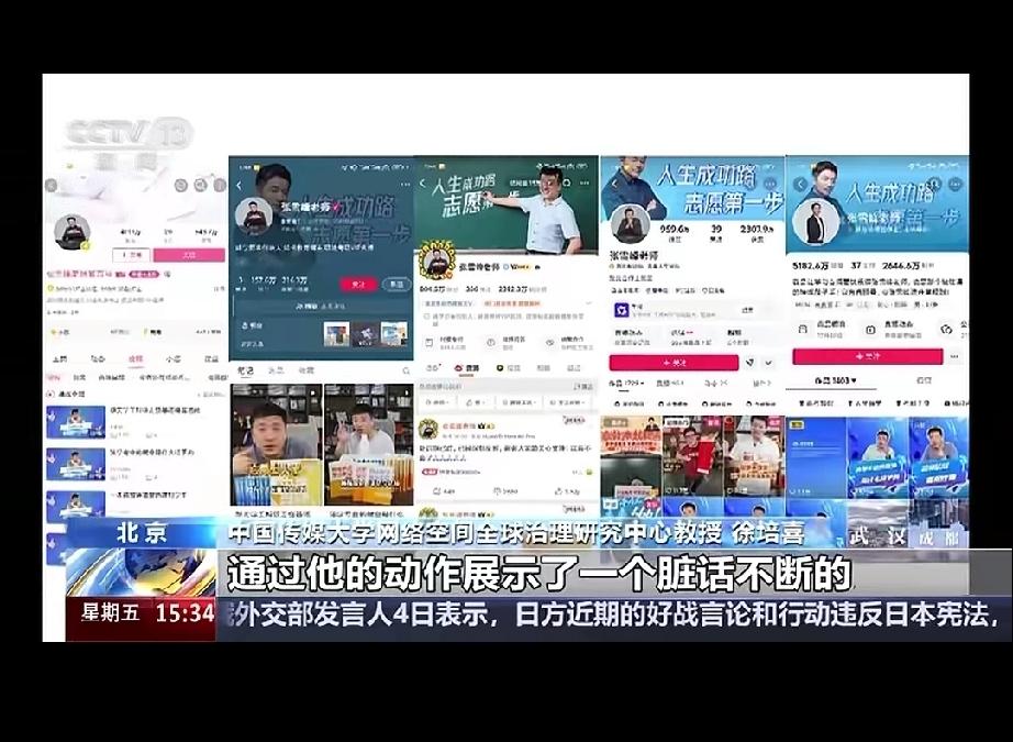 今天周五下午,央视再次曝光“张雪峰老师”内容涉黄[捂脸],污言秽语,被禁言停播! 央视里报道他的原话是“通过他的动作,展示了一个脏话不断的,一个所谓的教师的形象”。 也就是说,在正派的人眼里,他压根算不上一个教师。 他的中气特别足,音量很大,给人错觉是好像声音越大,越有道理了。 其实肚子的墨水不多。 因为每一个专业,每一个领域,只要你用心去做,都有机会成材。 我有个钓友,他中专临床医学毕业,还在2022年考进了医院编制,他所谓的学医必须高学历才有出息,也不一定的。