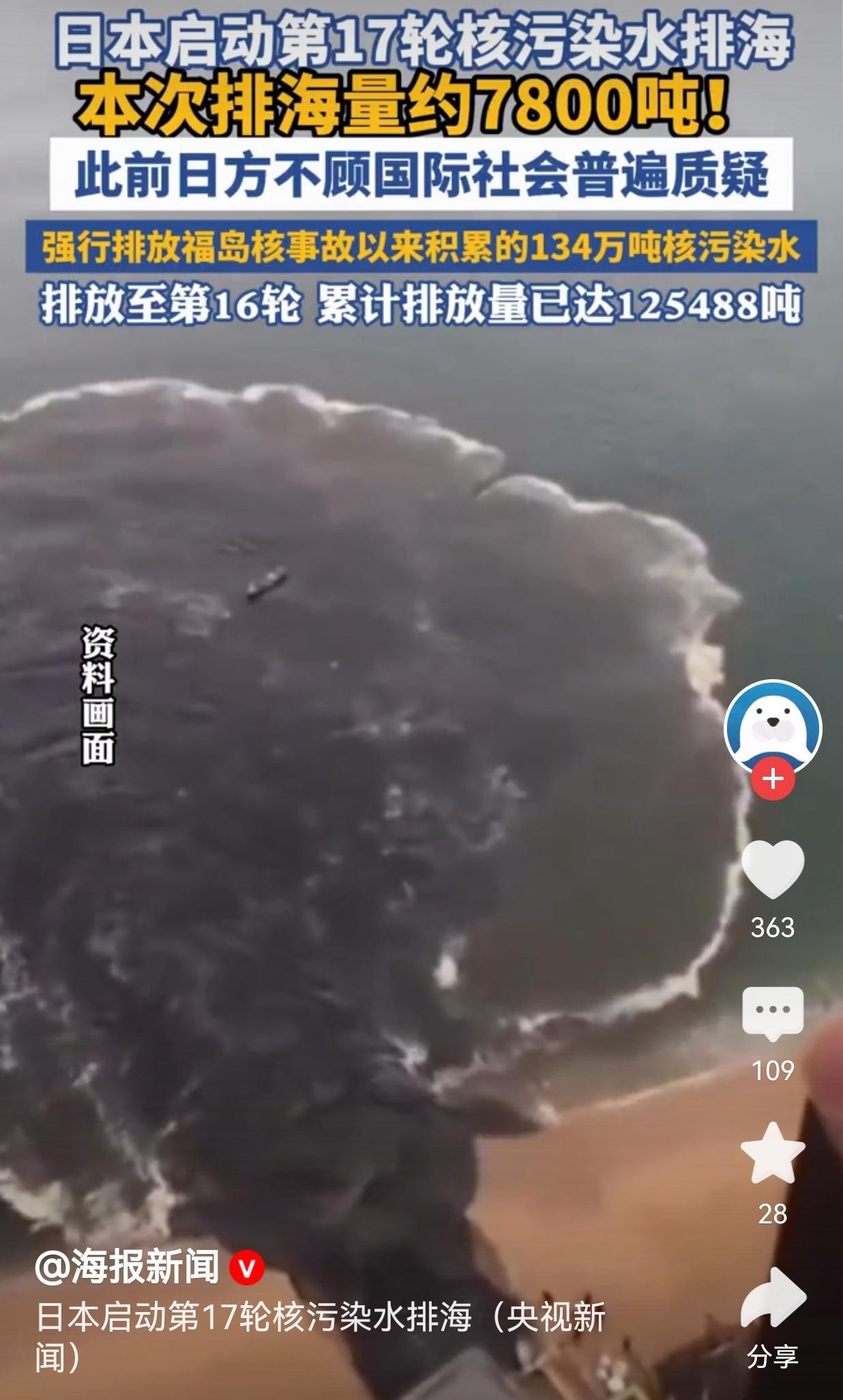日本第17轮核污水今起排放!7800吨入海,你常买的海鲜正在经历什么? 1️⃣ 7800吨核污染水,今天起正式入海!日本第17轮排海已于12月4日启动,持续至22日共18天 。说白了这7800吨可不是小数目,咱换算下就懂了,这相当于一次性灌满3.6个标准奥运游泳池,就这么不管不顾地往太平洋里倒。 2️⃣ 更惊人的是“累计量”:算上之前的16轮,日本累计排海已经超12.5万吨了 。你可能没发现,这个数要是都用泳池装,接近90个泳池的放射性废水早就融进了海洋,太平洋真成了他们的“下水道”。 3️⃣ 一位福岛老渔民的呐喊:“普通垃圾倒海里都要重罚,为什么核污染水就能一排了之?”这话戳中了无数人心窝子。现在日本渔港堆着12万吨卖不出去的水产,北海道三成渔民都在打听转行出路,60岁的老渔民只能卖船度日,一辈子的营生全毁了。而东电倒是大方,截至11月26日已掏了850亿日元补偿金,但这钱能买回干净的海域和渔民的生计吗? 4️⃣ 对中国餐桌的潜在影响: · 价格波动:咱早就全面暂停日本水产品进口了,国产海鲜和替代进口货成了主力。连云港梭子蟹、舟山黄鱼这些本土货卖得火爆,部分紧俏品种价格略有浮动,但整体供给稳得很。 · 安全焦虑:即便海关对进口海鲜严查死守,像厄瓜多尔输华水产品都要过好几道检验检疫关 ,家长群里“孩子还能放心吃鱼吗?”的疑问还是没断,这心理阴影哪是一天两天能消的。 5️⃣ 我们的态度:中国一直明确反对这种自私行径,韩国也在加强检测,但太平洋是全世界的公共财产。日本还计划2026年3月搞第18次排海,这场“排放马拉松”压根没打算停 ,说白了就是把全人类的健康当赌注。 最后,想和大家探讨两个现实问题: 1. 如果你看到商家挂出“本店海鲜100%非日本进口”,你会更放心吗? 2. 除了不吃日本海鲜,你觉得普通人还能怎样守护自家餐桌? 理性讨论,相信科学,关注监管。 日本排放核污水 日本核污水海鲜