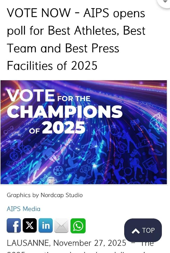 虎扑12月05日讯据国际体育记者协会官网最新消息,2025国际体育记者协会(AIPS)年度评选正在进行中。