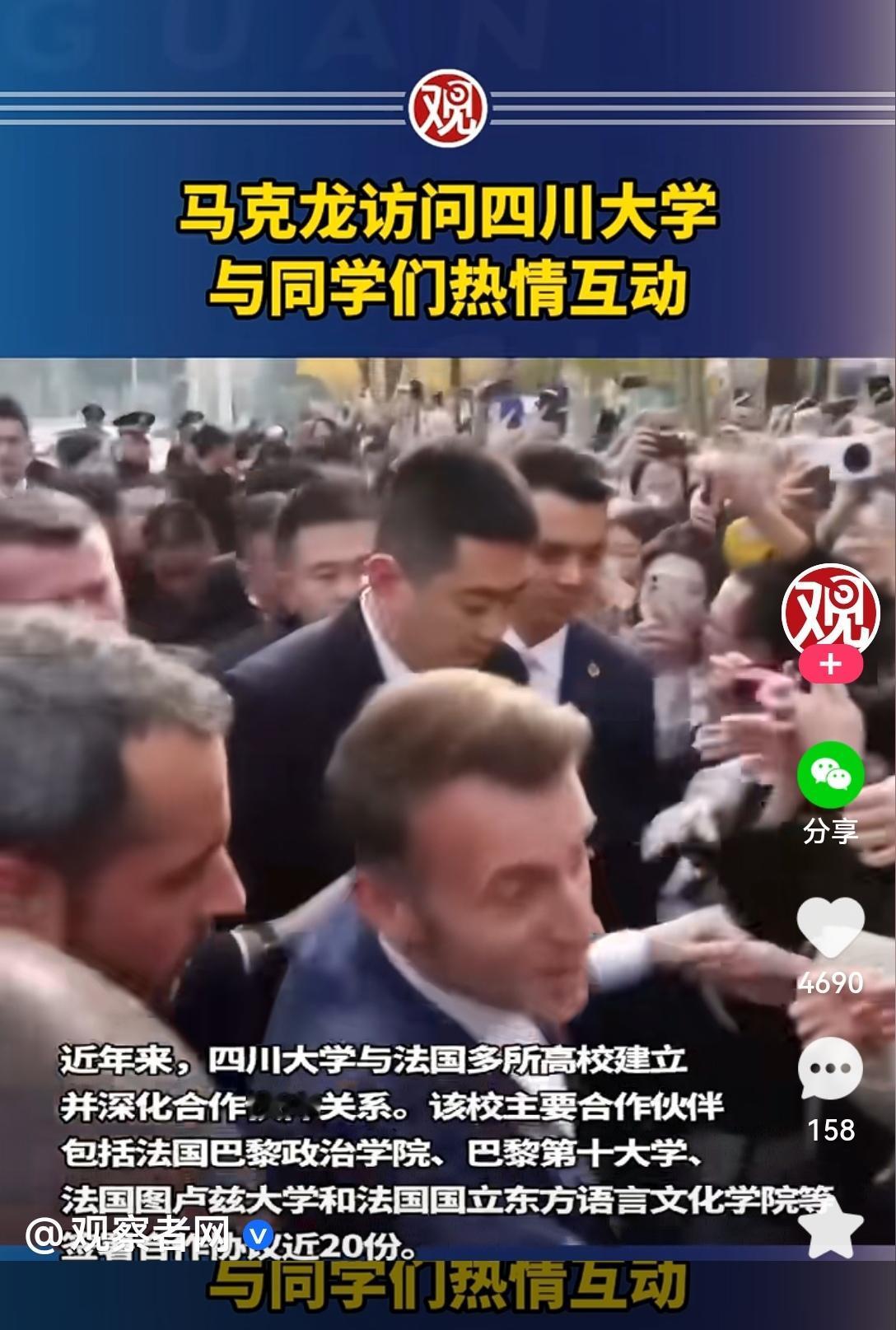 [吃瓜群众]🇫🇷马克龙成都这一趟,公园晨跑“群众点赞”,四川大学“粉丝癫狂”[思考]“情绪价值”给🉐很足啊[灵光一闪] 只有“观察者网”不识相,配的BGM竟然是——《折风渡夜》(少帅进行曲)[吐血]