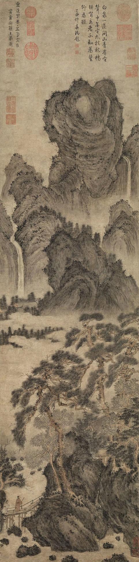 元 管道升《烟雨丛竹图卷》 明 蓝瑛《溪山秋色图》 明人仿周文矩《宫人合乐图》 《宣文君传经图》 李嘉福 ​​​《礼佛图》 元 赵原仿燕文季山水 吴昌硕 《雁来红图》 王式出游图 元 王蒙 《松崖飞瀑》