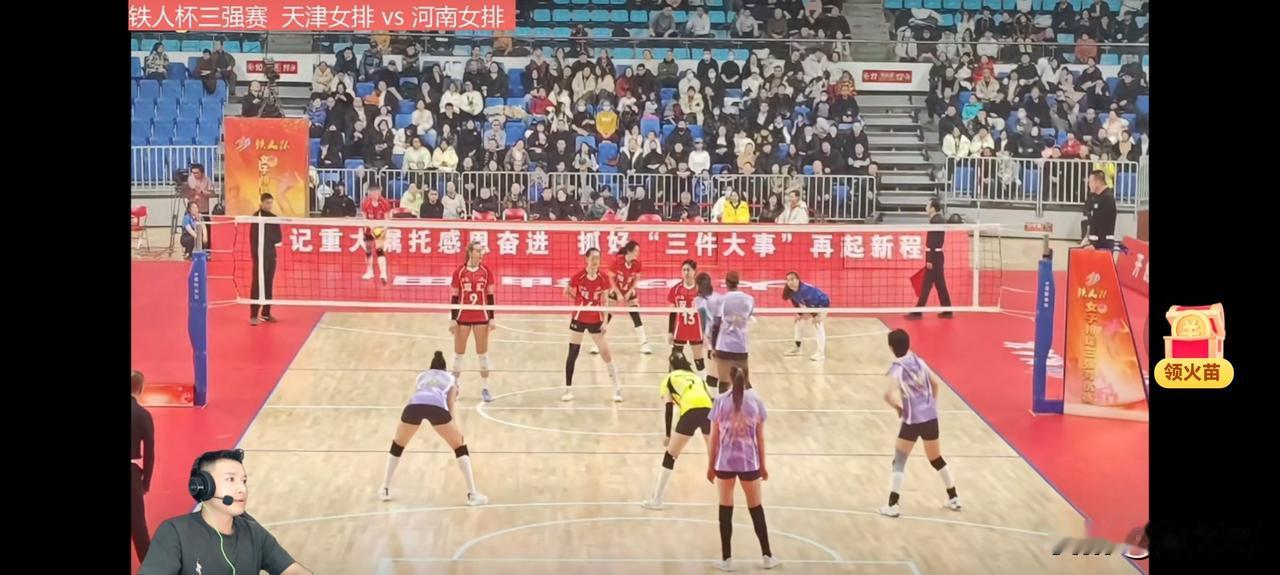 直播中铁人杯天津女排 铁人杯女排三强赛 天津女排对阵河南女排 第一局天津女排25:18河南女排 第二局天津女排25:21河南女排 第三局天津女排18:25河南女排 第四局天津女排26:24河南女排 最终天津女排大比分3:1战胜河南女排。 天津女排首发阵容,主攻娜塔莉亚,陈鹤欣,副攻小马丁内斯,夏思佳,接应,刘鑫,二传孟豆,自由人杨艺。第二局路晶替下陈鹤欣,孙婉鋆替下杨艺