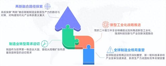 当下,全球制造业格局正在经历深刻重塑,新一轮科技革命和产业变革加速演进,以颠覆性技术和前沿技术为核心的新质生产力,已成为决定国际竞争主动权的关键变量。党的二十届三中全会明确提出“加快推进新型工业化”,科技创新和产业创新深度融合发展作为新型工业化的核心驱动力,其融合质量直接影响着制造业新质生产力培育的成果。作为世界第一制造业大国,我国面临着从“规模扩张”向“质量效益”转型的迫切需求,亟需通过“两新”融合来破解核心技术瓶颈、优化要素配置效率,从而推动制造业实现向产业链价值链高端的跃升。在此背景下,系统探索“两新”融合赋能制造业新质生产力的路径与对策,对构建现代化产业体系具有重要现实意义。