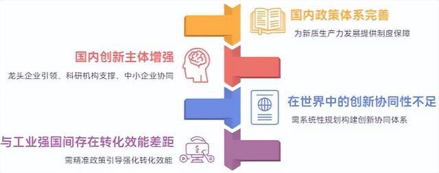 一是亟需通过系统性战略规划,构建创新协同体系。美国“先进制造业领导力战略”聚焦科技、产业与市场需求的联动协同,以“公私合作”为核心模式,将科技创新目标与产业链升级、民生需求精准对接,例如通过能源部、商务部与特斯拉、通用电气等企业联合设立“先进制造伙伴计划”,围绕新能源装备、智能传感等领域建立跨部门、跨主体的协同创新网络,形成“需求牵引研发、研发支撑产业”的包容性集成体系。我国虽然已建设了33家国家制造业创新中心,但缺乏系统性的协同创新设计,在创新主体联动、需求与研发的精准匹配上仍有不足,尚无法形成类似“需求、研发、产业”闭环的包容性“大集成”格局,难以充分释放创新协同对制造业升级的支撑效能。二是亟待通过精准化政策引导,强化成果转化效能。德国“工业4.0”战略依托创新驱动发展战略实施重工业政策和科技进步政策等组合拳,聚焦智能制造与工业数字化转型,多层次统筹协调政府、企业、科研机构多方资源,形成相互配合、互相协调的一体化协同创新体系;我国目前已初步形成政策支撑体系,但是在政策协同与转化效能方面仍有明显差距,科技、财政等多部门政策存在碎片化问题,宏观取向一致性的欠缺使得公共政策的整合效力被削弱,无法发挥出应有的政策效应,“两新”深度融合赋能制造业新质生产力势在必行。
