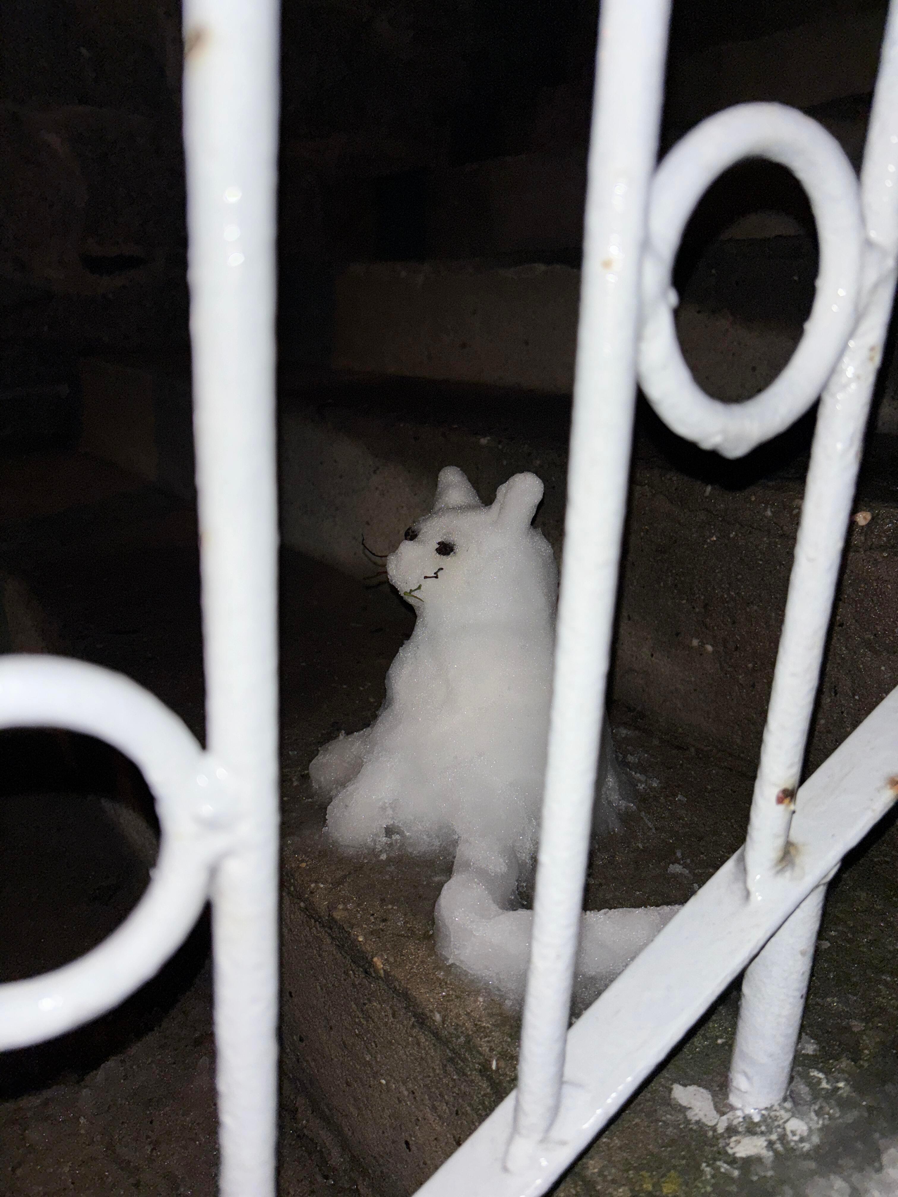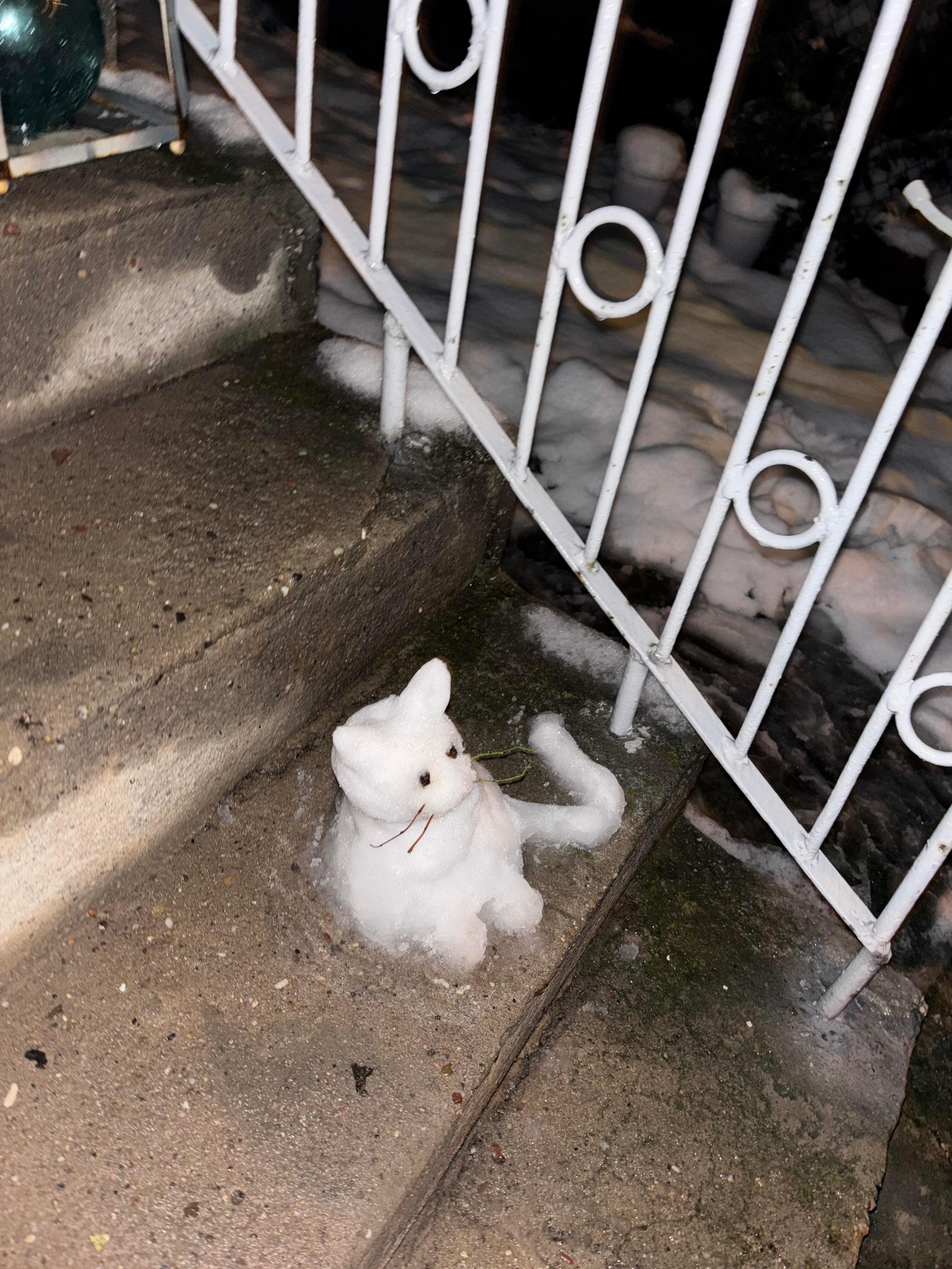 下雪了 堆了一只看门小猫咪