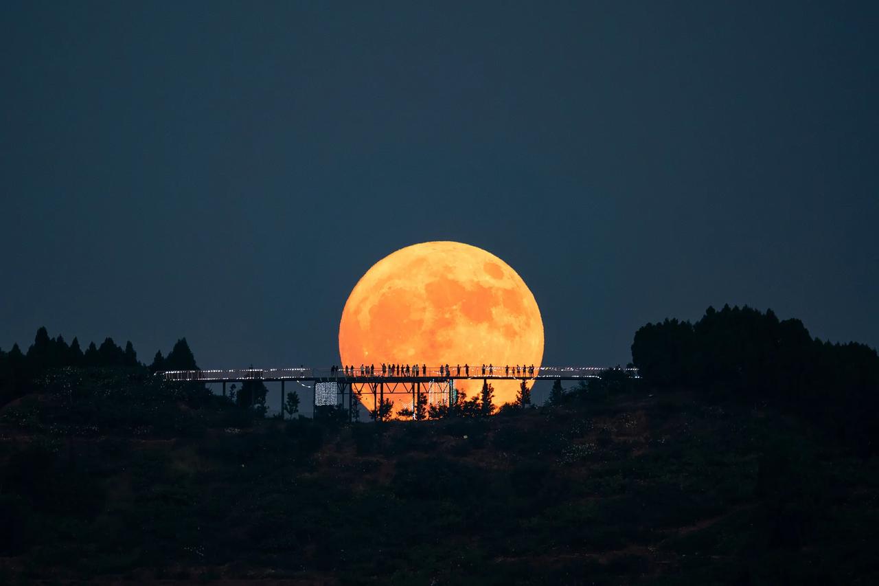2025最后一次超级月亮今晚登场!肉眼就能看 天文爱好者注意啦,2025年最后一次超级月亮今天(12月5日)亮相,这也是今年第四次超级月亮,观测条件超给力! 啥是超级月亮呢?简单说就是月亮运行到离地球超近的地方时刚好满月,看起来比平时更大更亮。今晚傍晚月亮离地球大概35.9万公里,比最远的时候近了5万公里,视直径能大7%左右,亮度也会增加15%,不过得对比着看或者有经验才能明显感觉到差异。 最佳观测时间是下午5点后月亮升起,到午夜前都能看。刚升起来的月亮靠近地平线,受大气影响,视觉上更大,颜色还可能更丰富,特别好看。观测也不用复杂设备,肉眼就行,找个东方开阔、光污染少的地方,比如郊区、公园或者高楼天台都可以。 想拍照的话,用手机或相机配个三脚架更稳,能找些地标建筑、树木当前景,这样能更明显衬托出月亮的大小。要是今晚阴天多云看不到也别急,很多天文机构和科普平台会直播,线上也能围观。 今年已经有过三次超级月亮了,分别是8月1日、8月31日和9月29日,其中8月31日那次还是蓝月(一个月两次满月),也是今年最大最亮的,特别罕见。 比较大的月亮 农村超级月亮