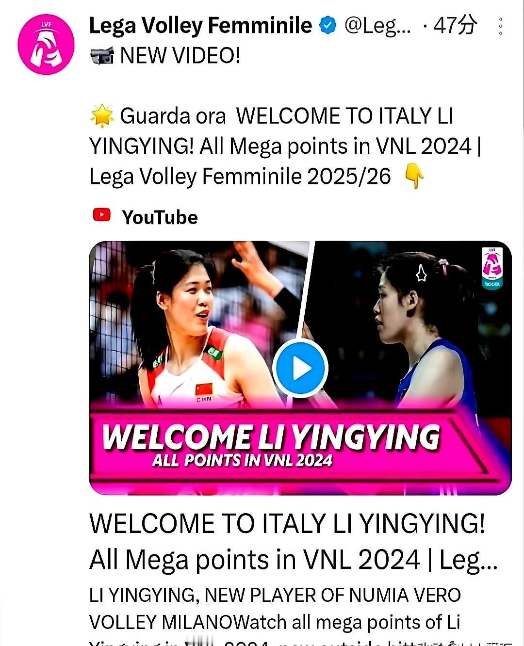 李盈莹和朱婷,意甲赛场要上演中国德比了! 妹妹这次加盟的可是米兰女排,队里实力不俗。这排面给足了。 人家为啥这么看重她?数据说话。2023年女排联赛,她扣球成功率干到48%,全球主攻手里排前三,这左手进攻忒猛了。 这事儿意义可不小。她是继朱婷之后,又一个现役国手主攻去意甲闯荡。 网上早就炸了,李盈莹加盟意甲话题阅读量都破2亿了。 顶级联赛练级,就是为了给2024巴黎奥运会攒经验,这波操作稳。