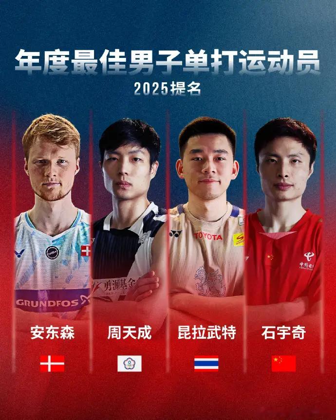 年度最佳男子单打运动员:安东森、周天成、昆拉武特、石宇奇