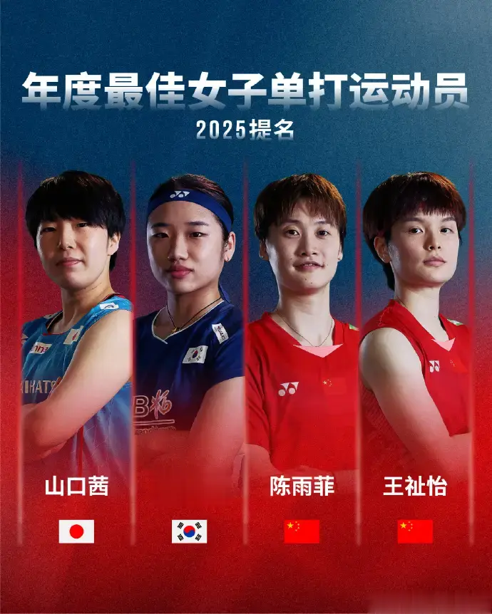 年度最佳女子单打运动员:山口茜、安洗莹、陈雨菲、王祉怡