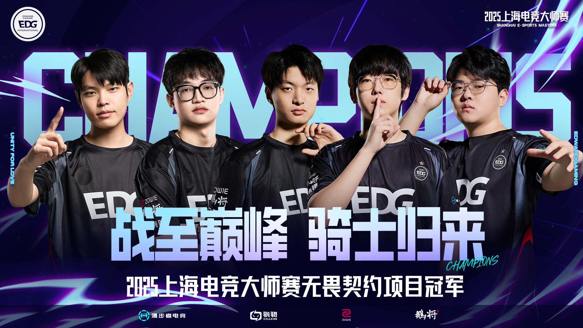 "利剑出鞘,荣光闪耀!恭喜EDG以3:0赢得决赛的胜利,夺得2025上海电竞大师赛冠军。今日骑士们以行云流水的战术配合掌控整场比赛的节奏,以凌厉之势直落三局,最终摘得桂冠。