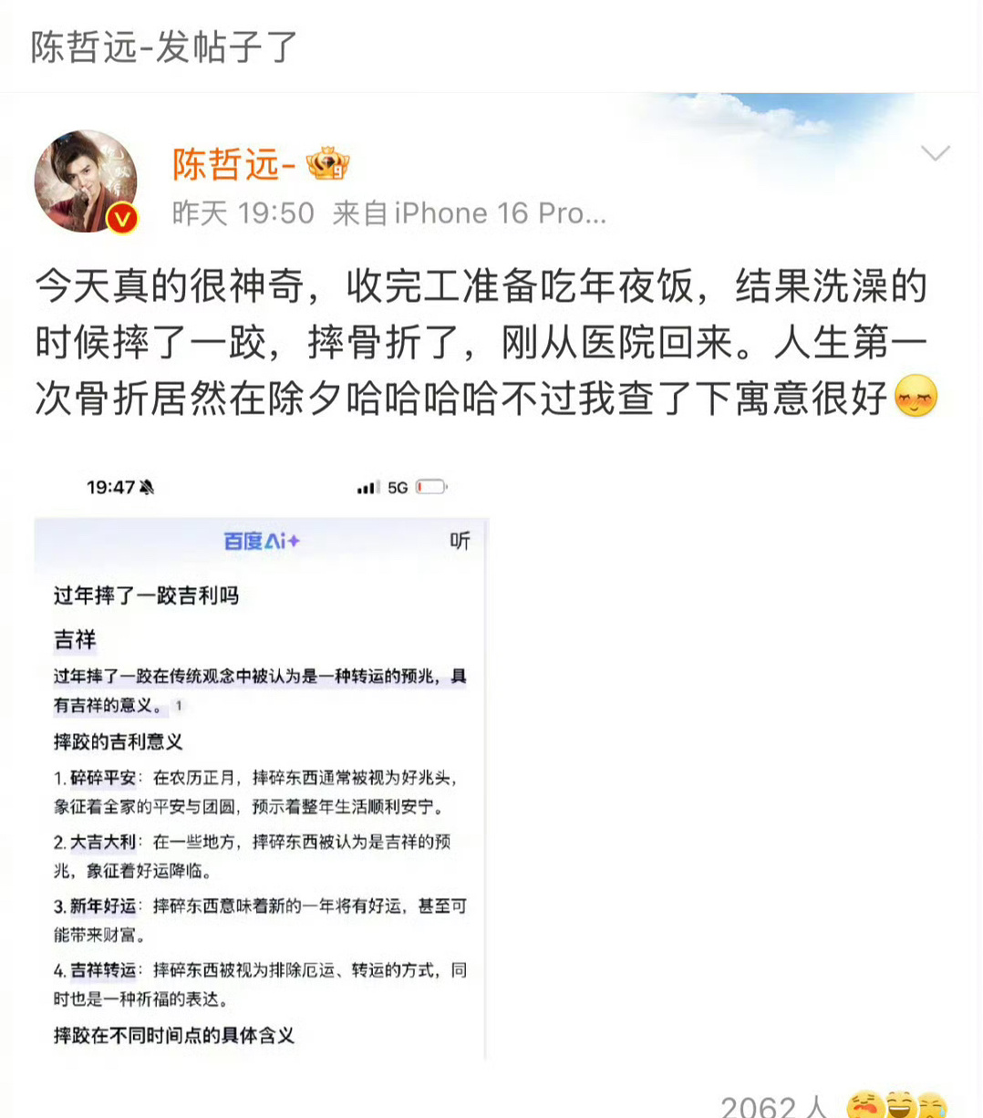 陈哲远晒手术取出的钢钉看着好心疼!从锁骨摔伤到做手术到取钢钉,每一步都对粉丝汇报