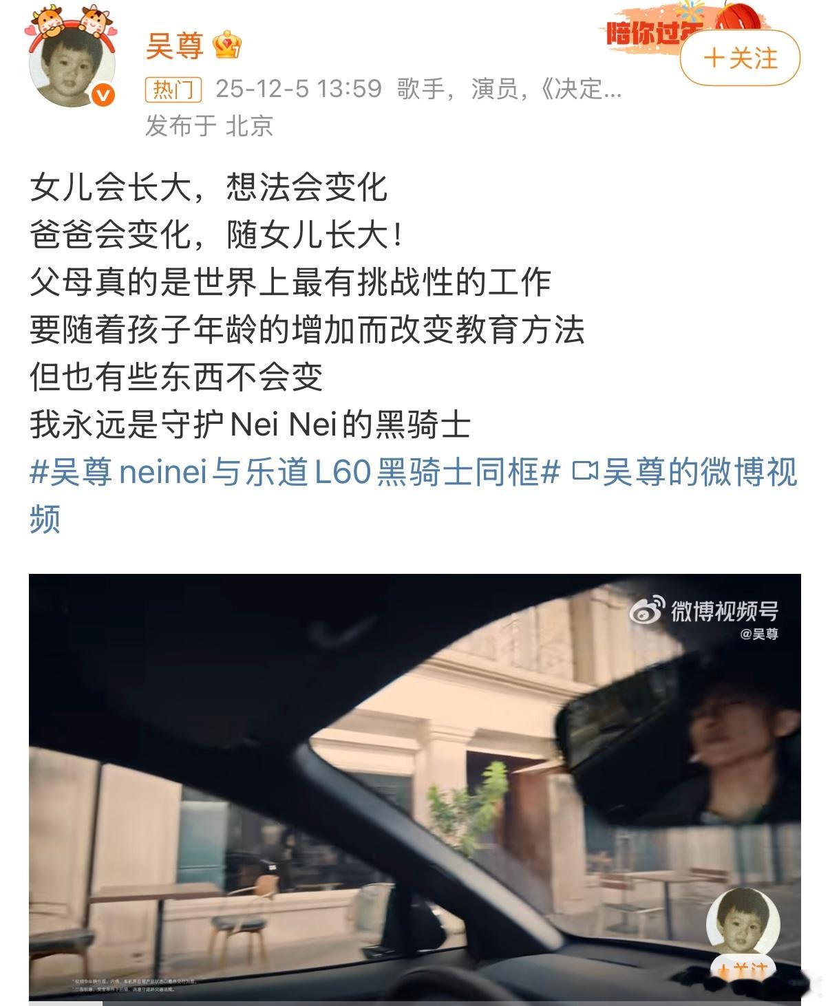 我男神居然成为乐道L60黑骑士用户啦?!打小就羡慕neinei,现在更羡慕了!“让爱很酷”好个性的slogan~马上回家卷一下爸爸,成为限量666台的黑骑士车主来守护我一下!吴尊neinei与乐道L60黑骑士同框乐道L60黑骑士