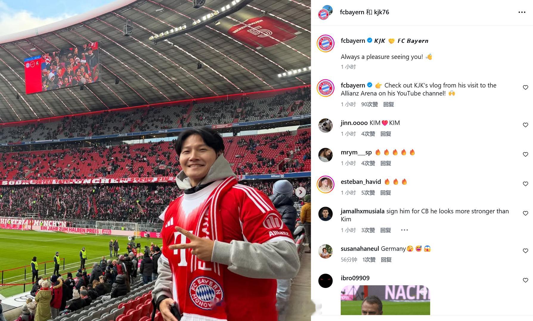 拜仁慕尼黑官方账号欢迎金钟国来访。