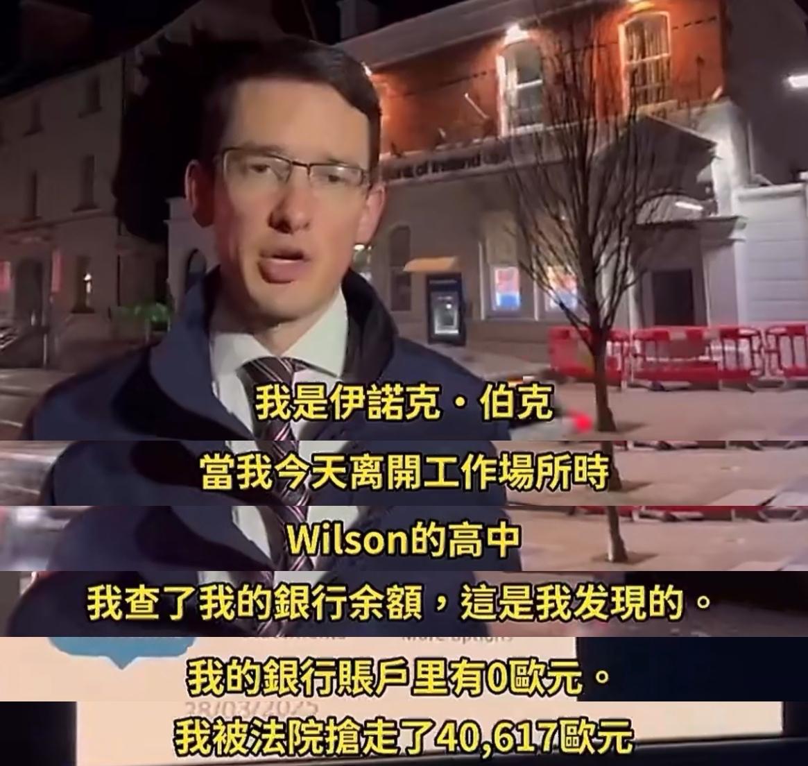 爱尔兰一位高中教师先是被学校解雇,又被监禁九个月,连银行卡里的资金都被清零,原因
